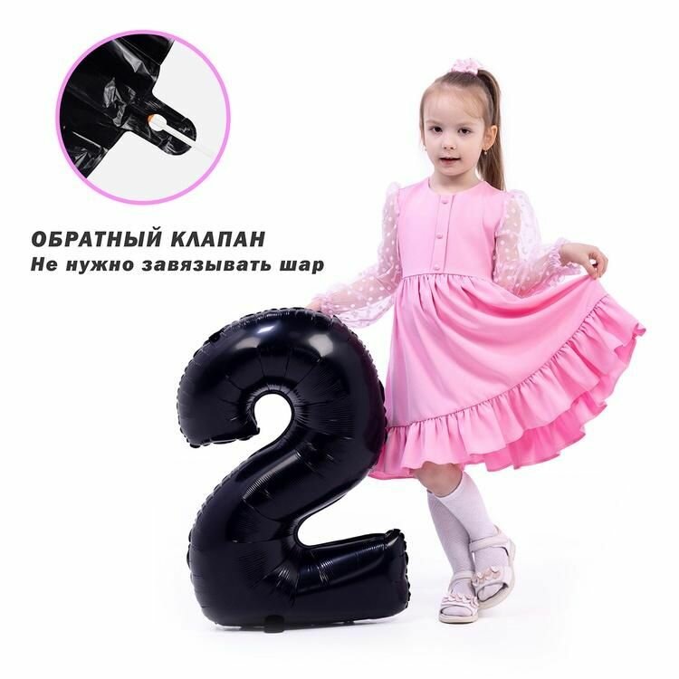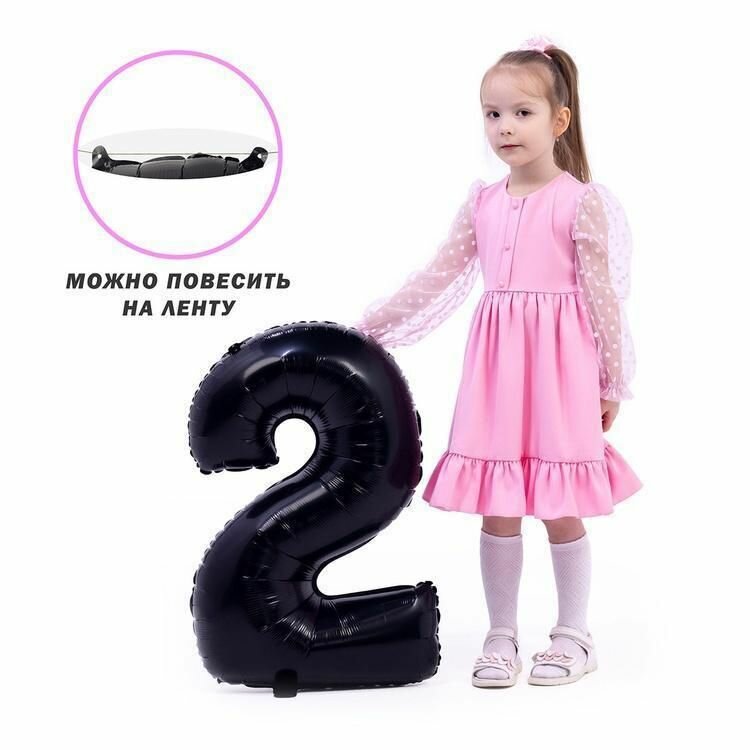 Купить Воздушный шар, Весёлая затея, цифра 2 черный 66см