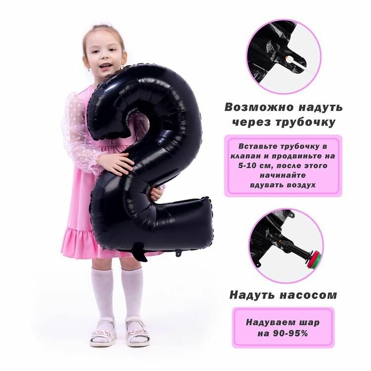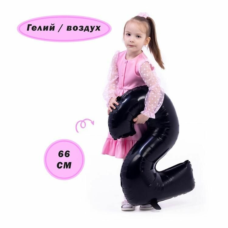 СохранитьВоздушный шар, Весёлая затея, цифра 2 черный 66см интересное: