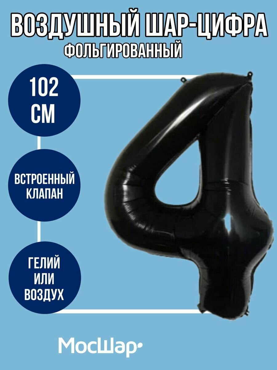 Купить Воздушный шар, Весёлая затея, цифра 4 черный 66см