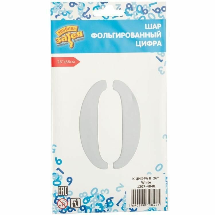 СохранитьВоздушный шар, Весёлая затея, цифра 0 белый 66см Китай интересное:
