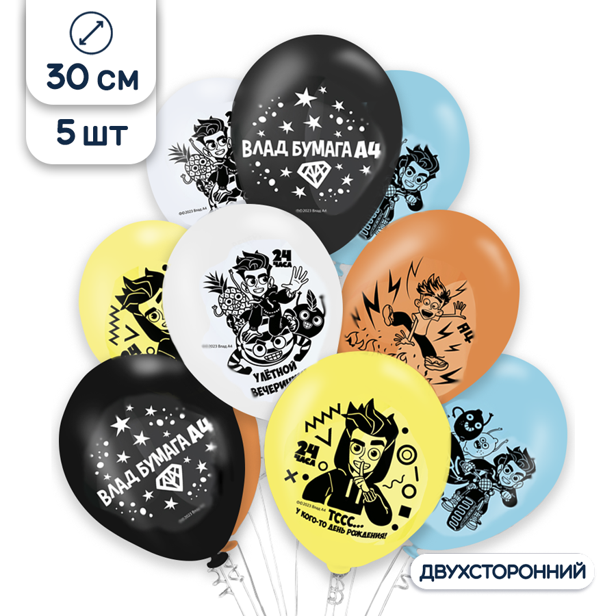 Купить Воздушные шары латексные Riota Влад А4, разноцветный, 30 см, 5 шт.