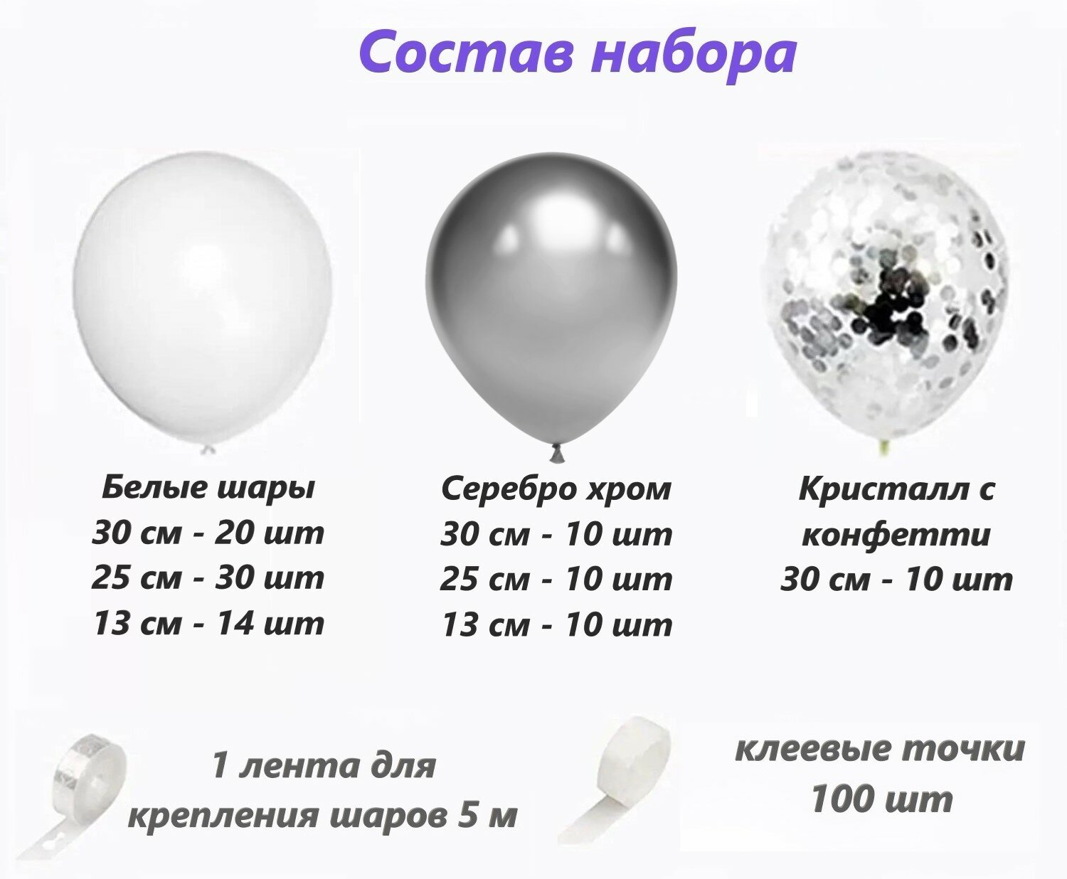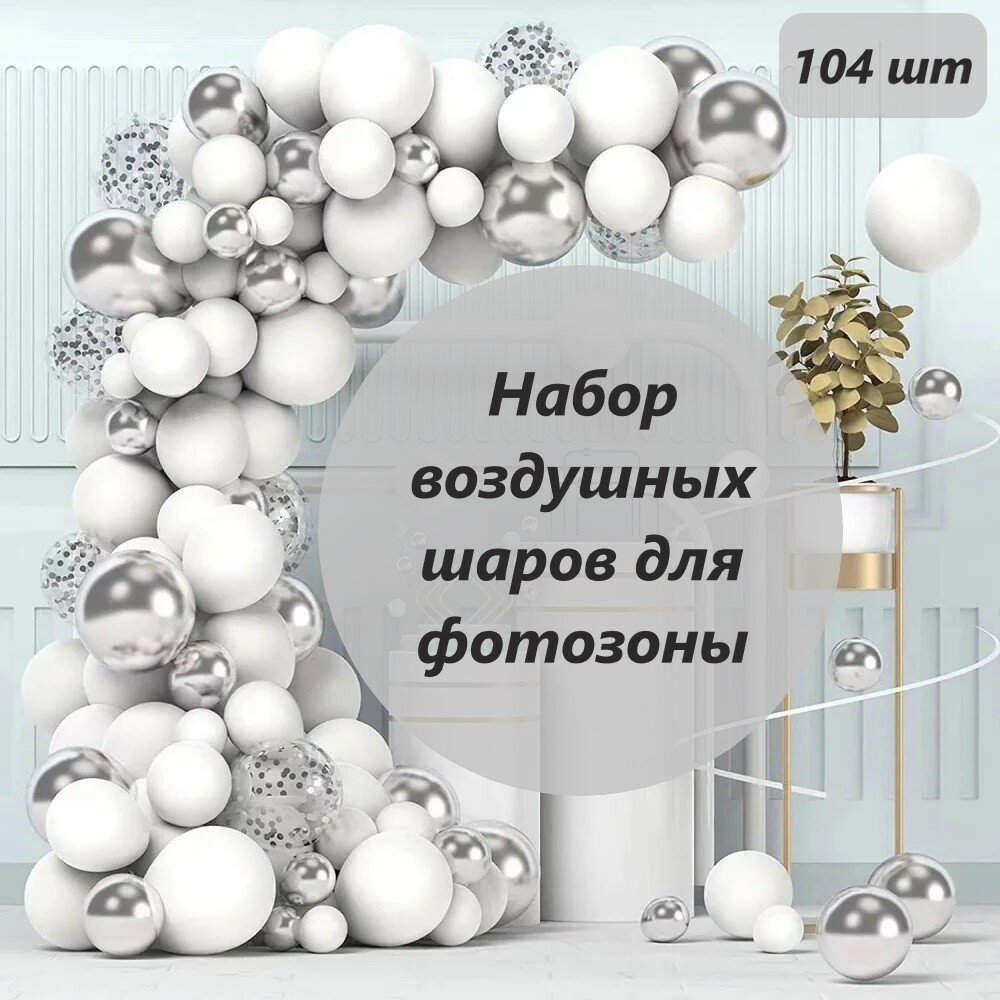 Купить Арка из воздушных шаров для фотозоны, белая/серебренная 104 шарика.