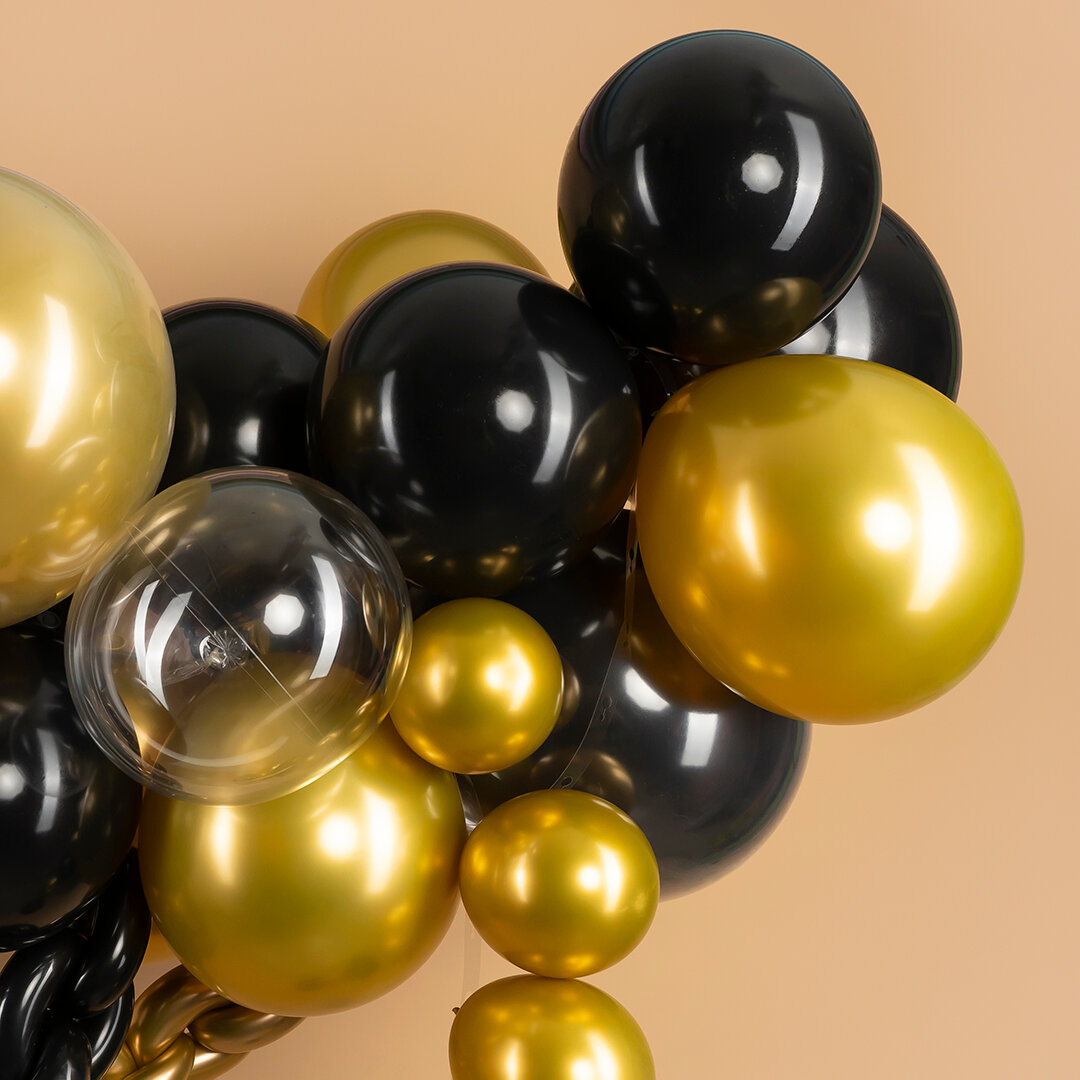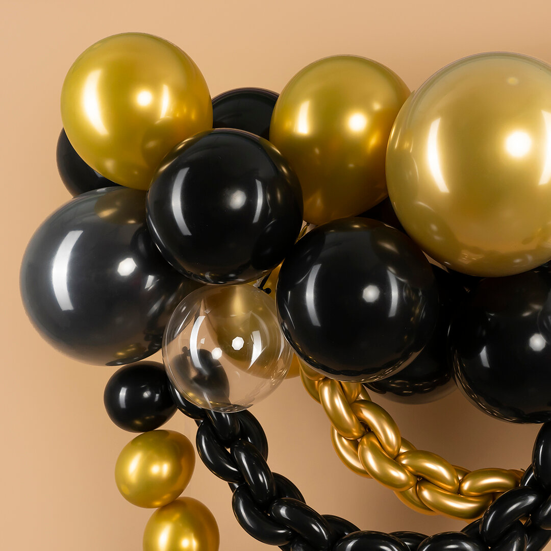 Купить Арка из воздушных шаров для фотозоны, чёрно золотая 51 шарик.