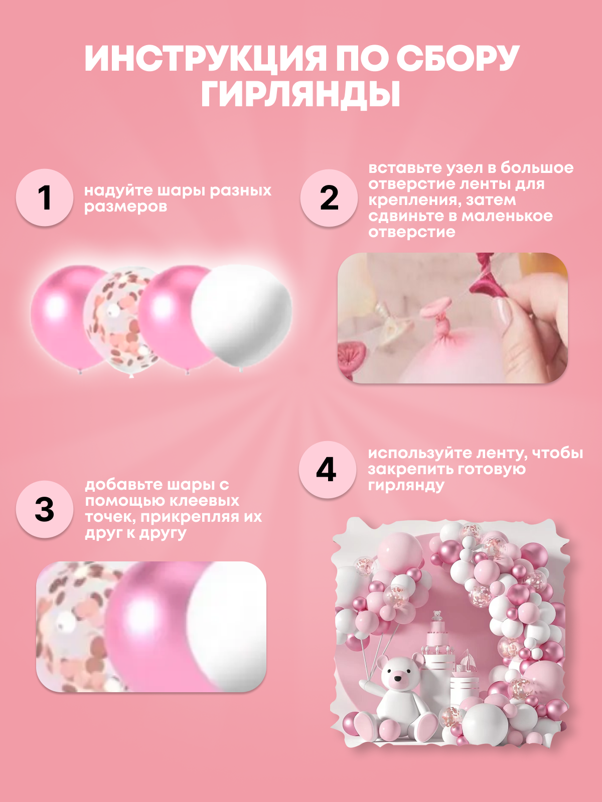 | Подробная комплектация | арка гирлянда из шаров фотозона - 1 шт.; лента для гирлянды из воздушных шаров основа 5 м. - 1шт.; клеевые точки для шаров на ленте 100 шт. - 1 шт. |