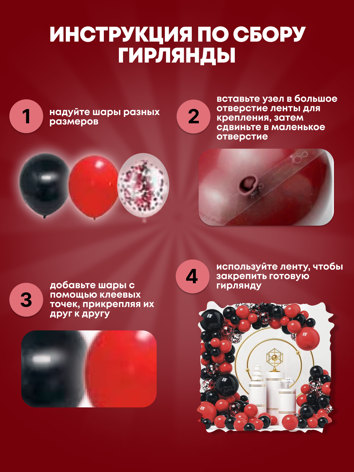 | Подробная комплектация | арка гирлянда из шаров фотозона - 1 шт.; лента для гирлянды из воздушных шаров основа 5 м. - 1шт.; клеевые точки для шаров на ленте 100 шт. - 1 шт. |