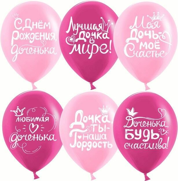 Шарики воздушные 5 шт Дочка, С Днем Рождения! Дон Балон 30 см