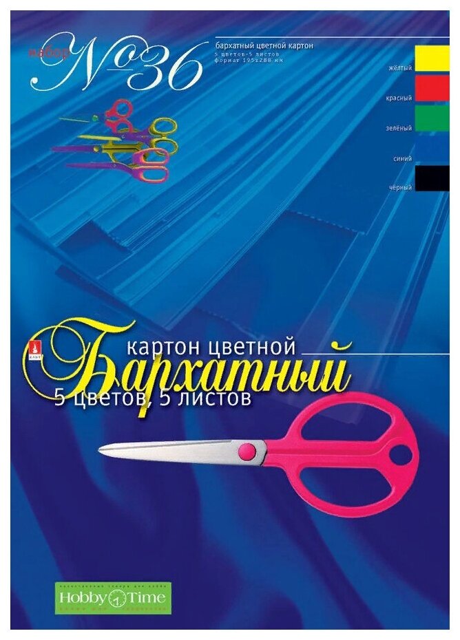 Купить Набор цветного картона HOBBY TIME № 36 А4 (205 х 295 мм), 5 листов, 5 цветов "бархатный"