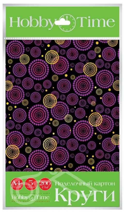 Купить Поделочный картон HOBBY TIME, А4 (208 х 338 мм), 5 листов, круги, Арт : 11-410-82
