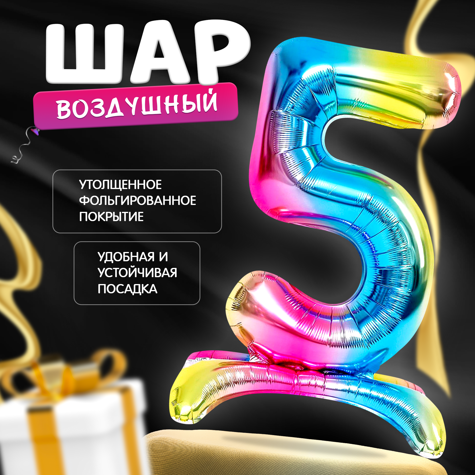 Купить Шар фольгированный "Цифра 5", на подставке, градиент, длина: 100 см., для детей и малышей
