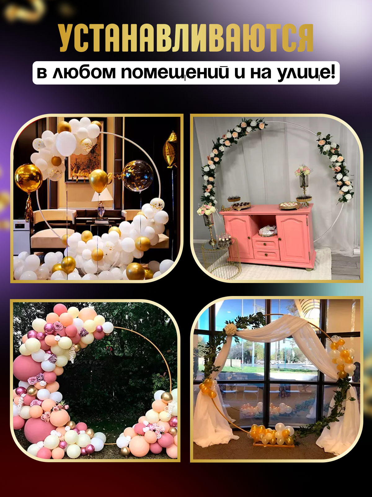 Арка для фотозоны и декора фона каркас для шаров круглый, зотолой интересное: