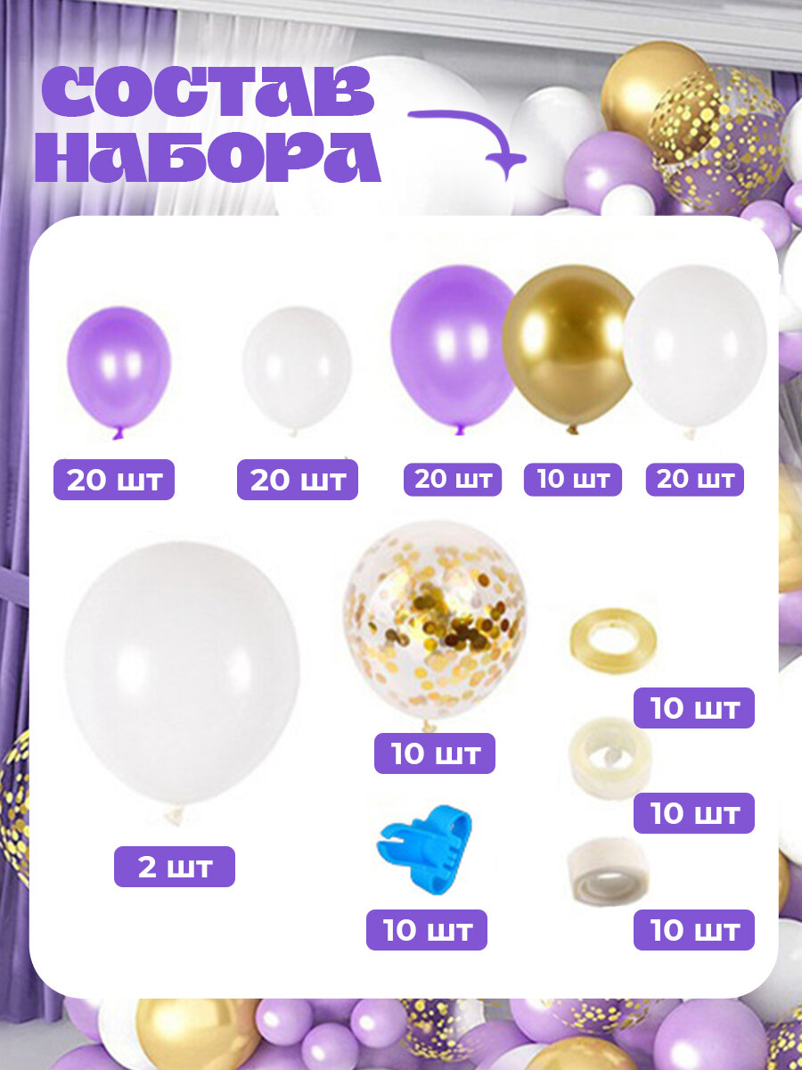 Ниже Вы можете прочитать отзывы на Воздушные шары на день рождения фотозона для детей, белый, фиолетовый, золото, ознакомится с подробными характеристиками, посмотреть интересные обзоры и фотографии на Воздушные шары на день рождения фотозона для детей, белый, фиолетовый, золото.