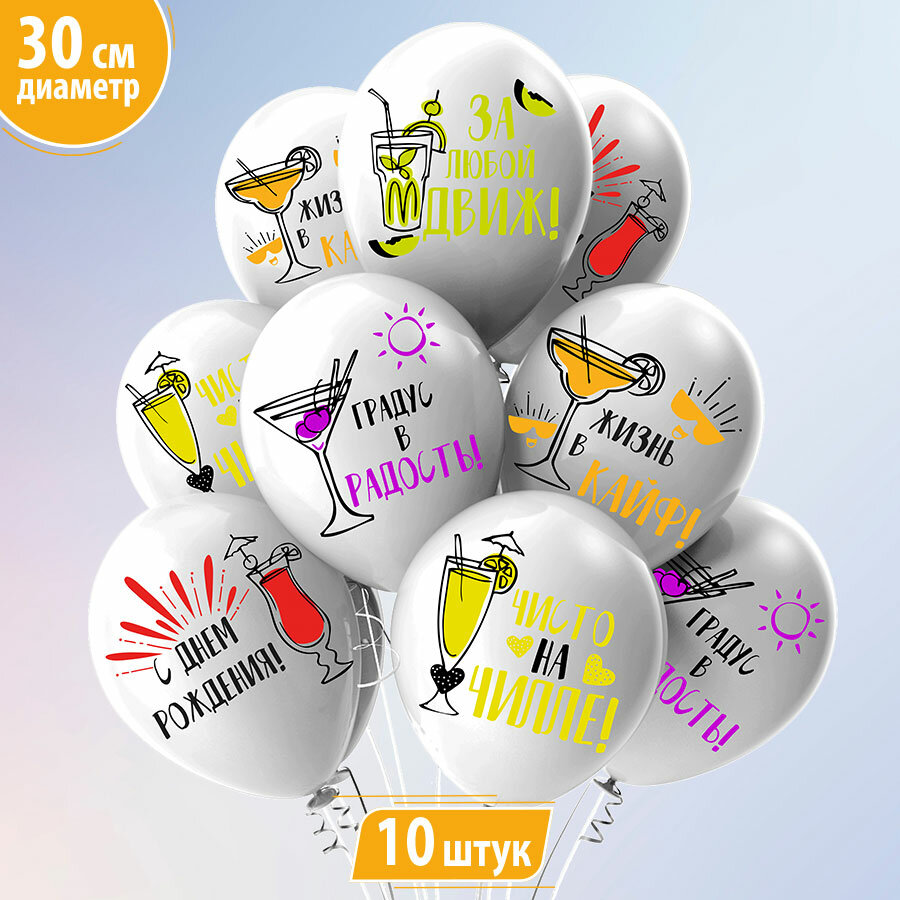 Шарики воздушные для праздника С Днем Рождения! "Жизнь в кайф!" 10 шт