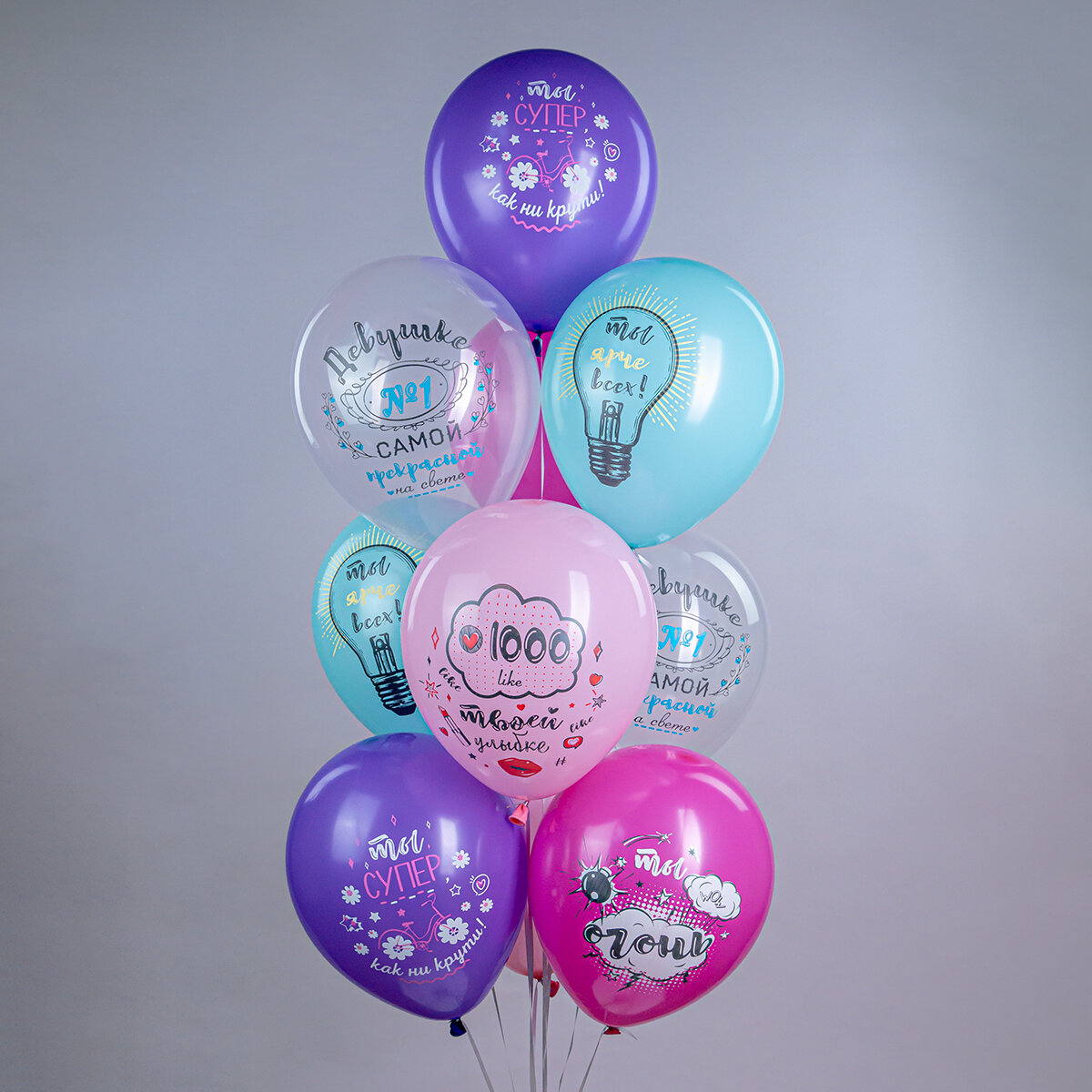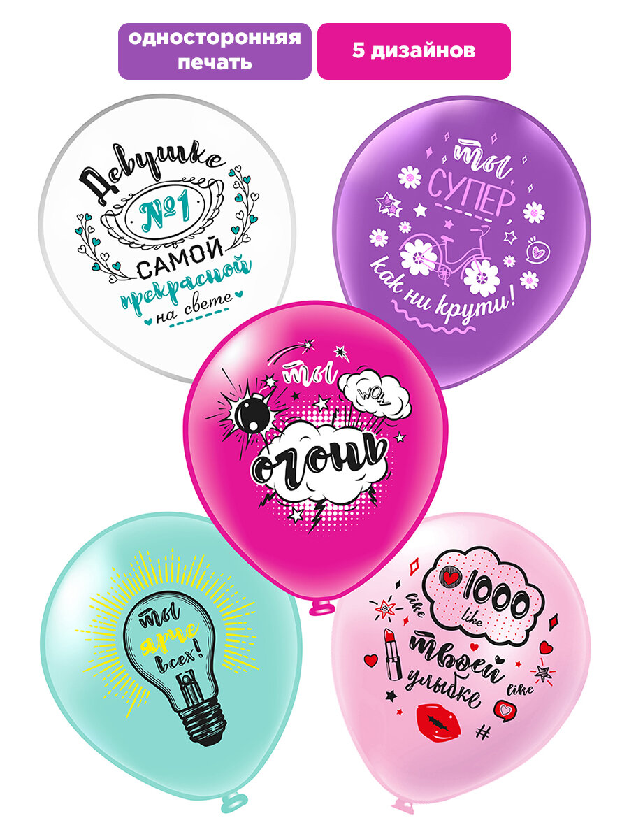 Купить Шарики воздушные для девушки комплименты «Ты ярче всех!» 10 шт