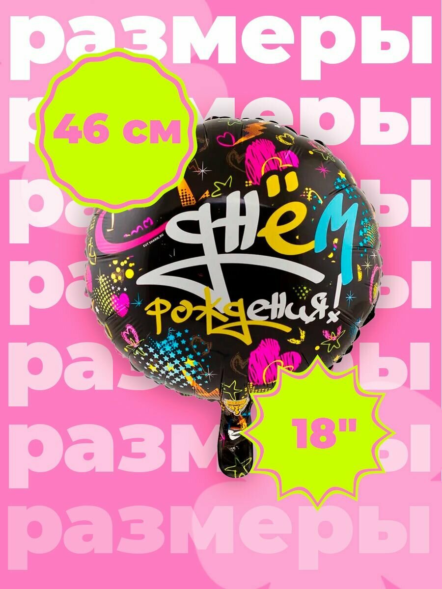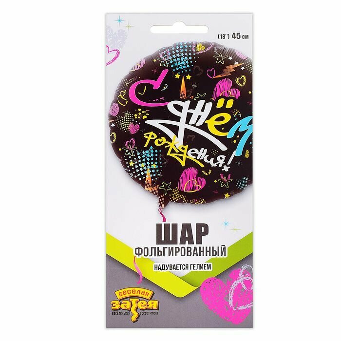 Шар фольгированный 18" «С днём рождения», граффити, сердца и звёзды интересное: