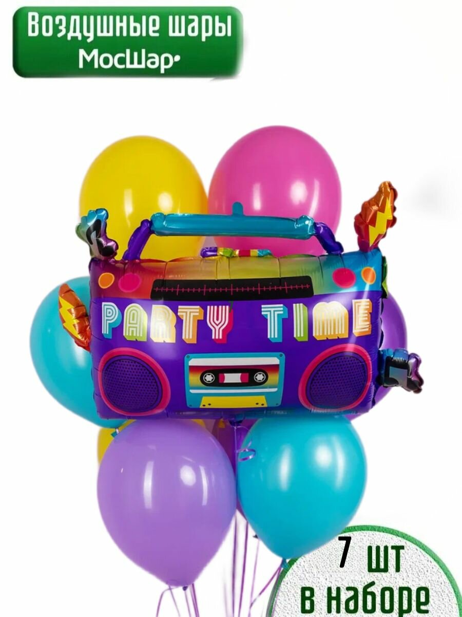 Купить Набор воздушных шаров на день рождения с магнитофоном , 7 шт