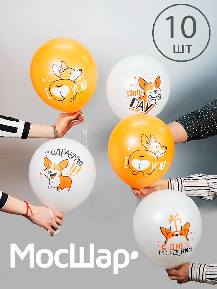 Купить Воздушные шары корги, 10 шт, 30 см