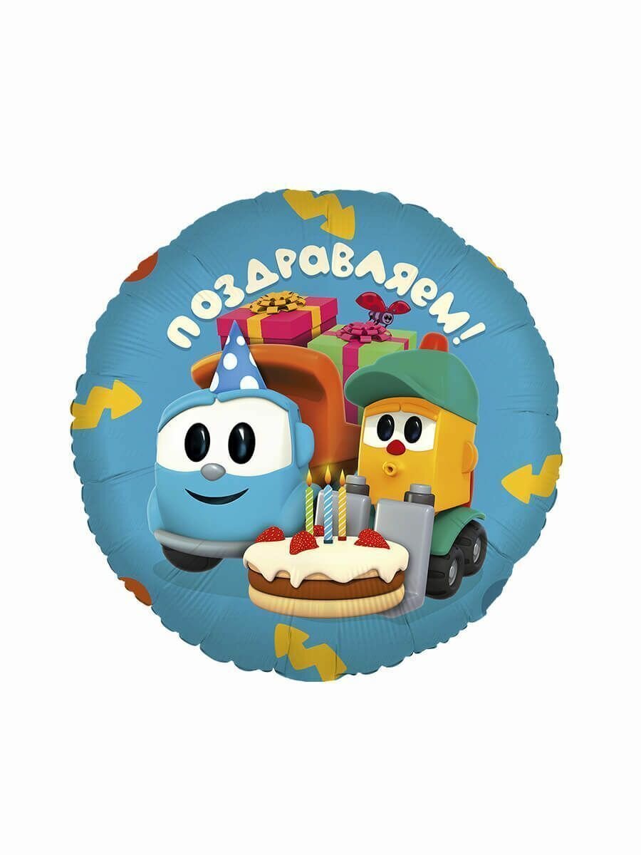 Купить Воздушный шар фольгированный в форме круга, Грузовичок Лёва - поздравляем