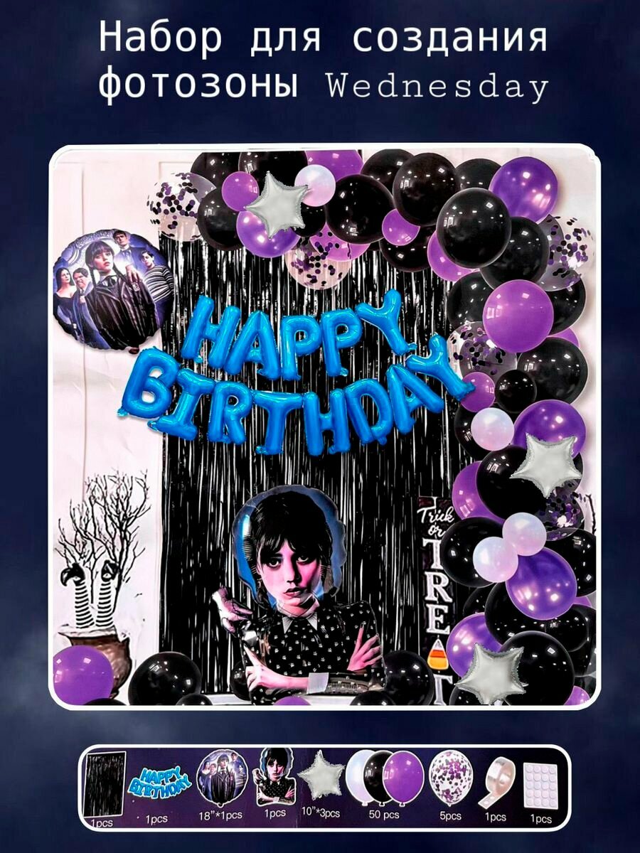 Купить Фотозона из воздушных шаров Венсдей, арка из шаров