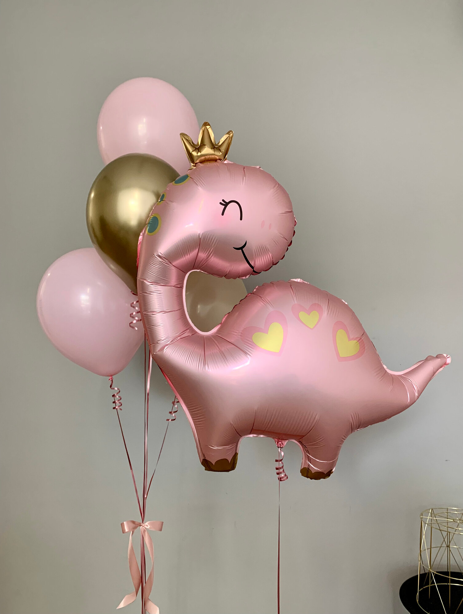 СохранитьНабор воздушных шаров Динозаврик розовый в короне, шары для девочки интересное: