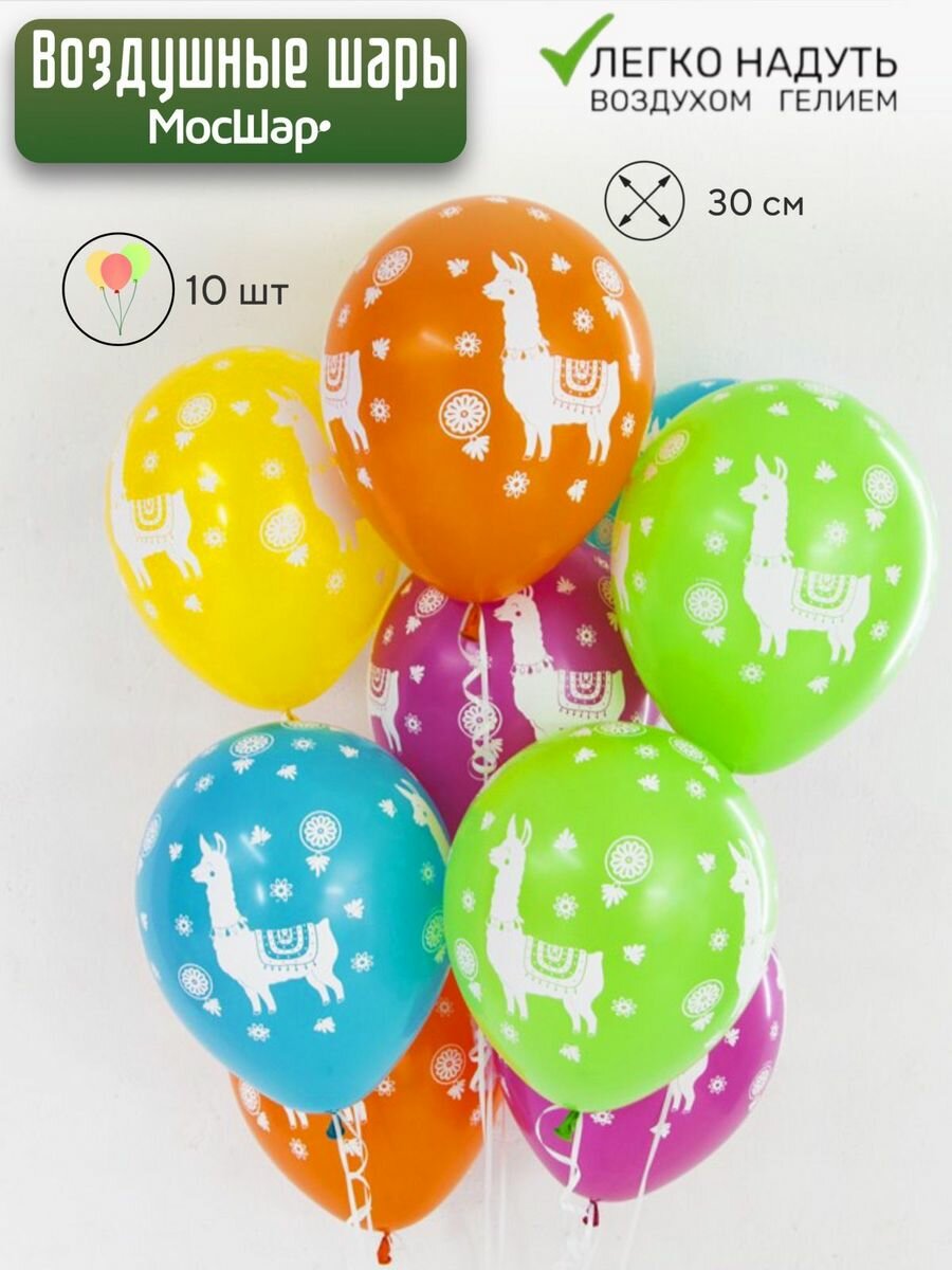 Купить Набор воздушных шаров на день рождения, Лама с рисунком, 10 шт