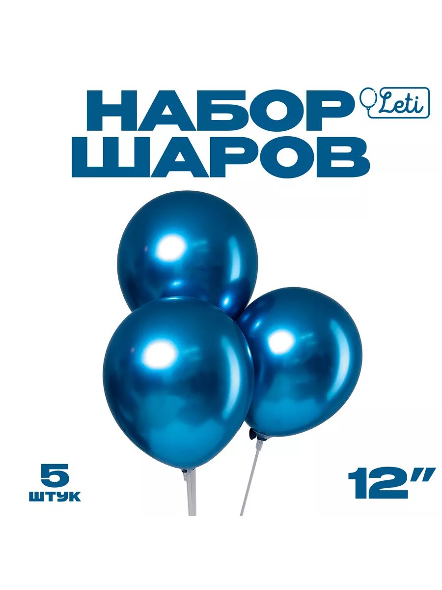 Шар латексный 12", "Хром", металл, 5 шт, цвет синий