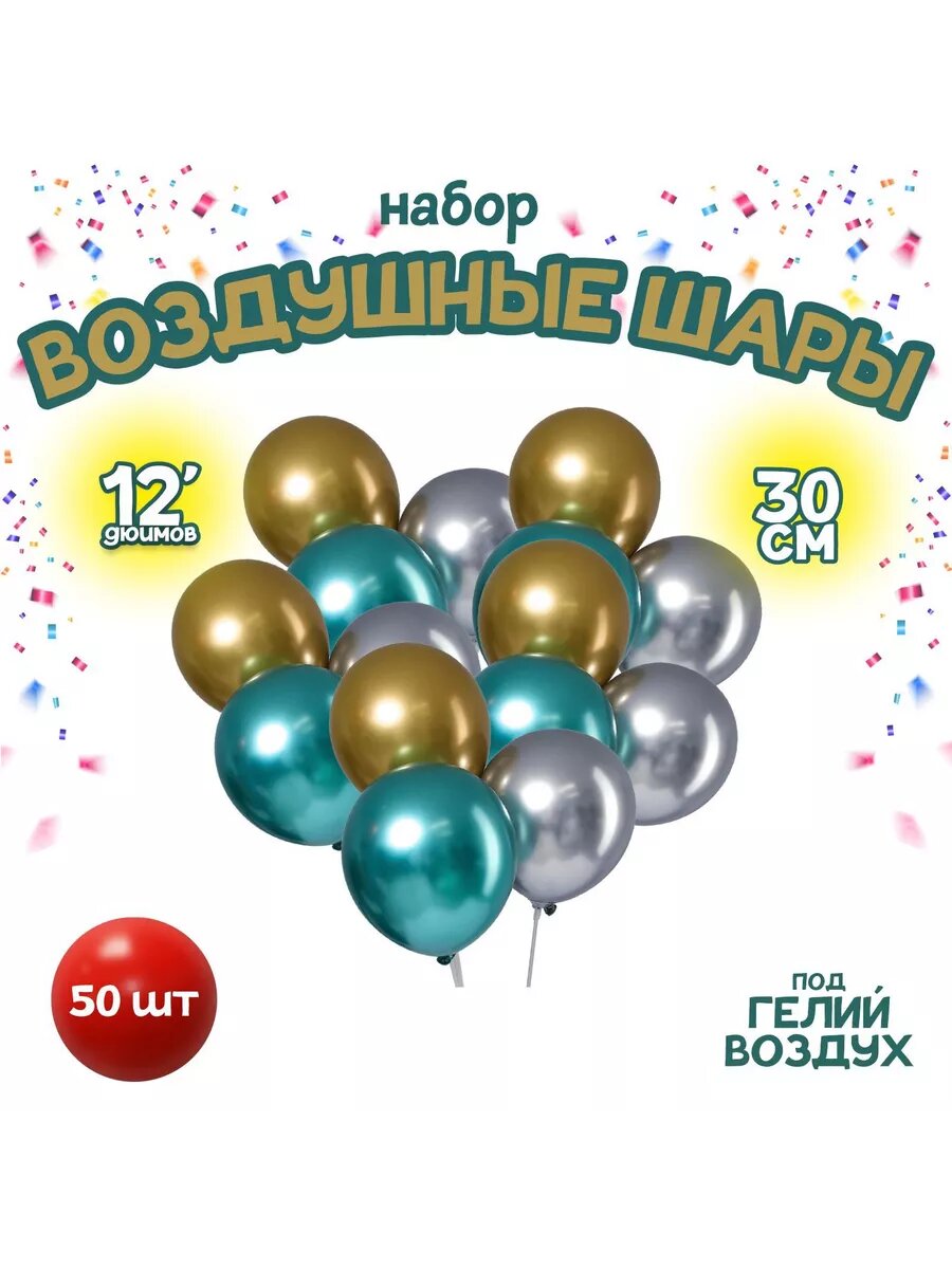 Набор воздушных шаров Leti металл, 12", хром, зеленый, 50 шт.