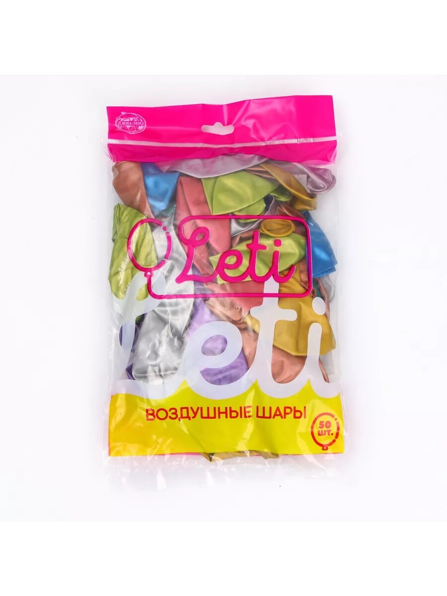 Набор воздушных шаров Leti металл, 12", хром, синий, 50 шт.