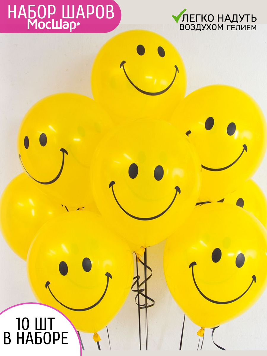 Набор воздушных латексных шаров на день рождения, смайлики, 10 шт