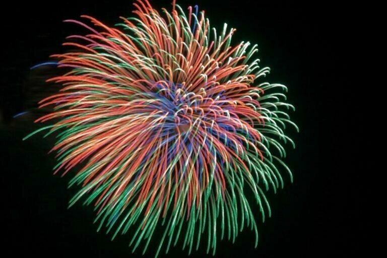 | Дополнительная информация | 1. Красные звезды с пышными хвостами (кокос) и треск. 2. Зеленые звезды с пышными хвостами (кокос) и треск. 3. Красно-белая мерцающая сфера (пион). . Множество серебряных ниспадающих нитей (парча). 5. Серебряные звезды с пышными хвостами (кокос) и треск. 6. Фиолетовые звезды и облако треска (трещащая хризантема). |
