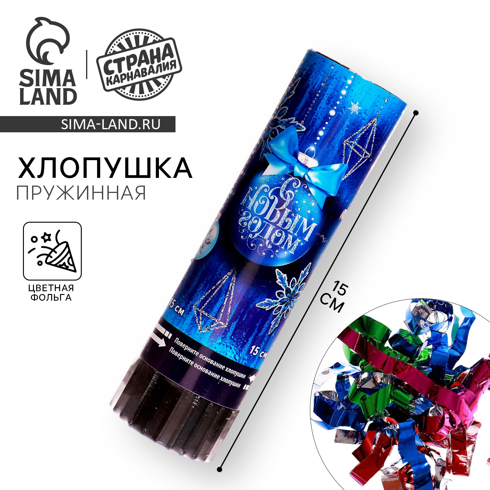 Новогодняя хлопушка пружинная поворотная «С Новым Годом», шарики,15 см интересное: