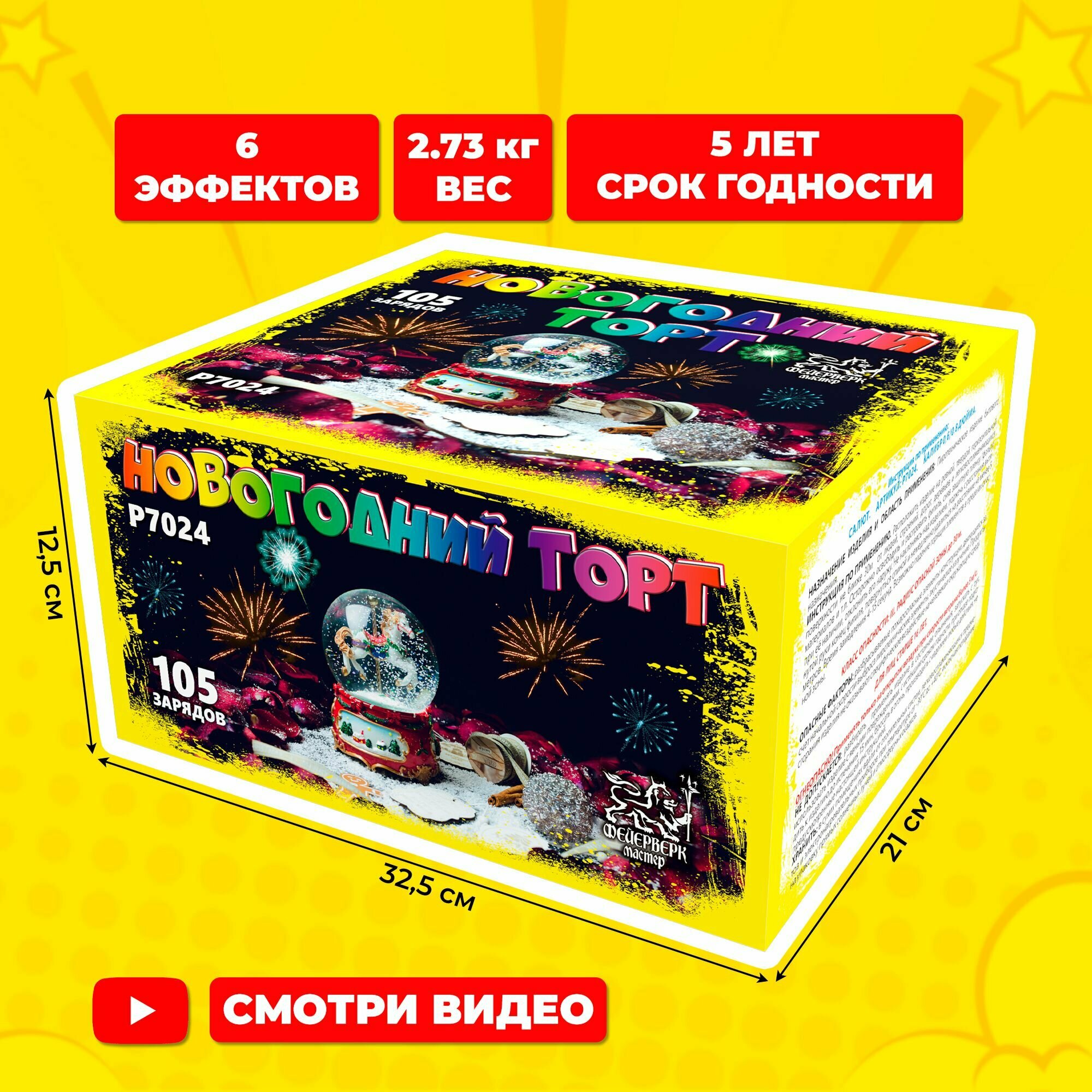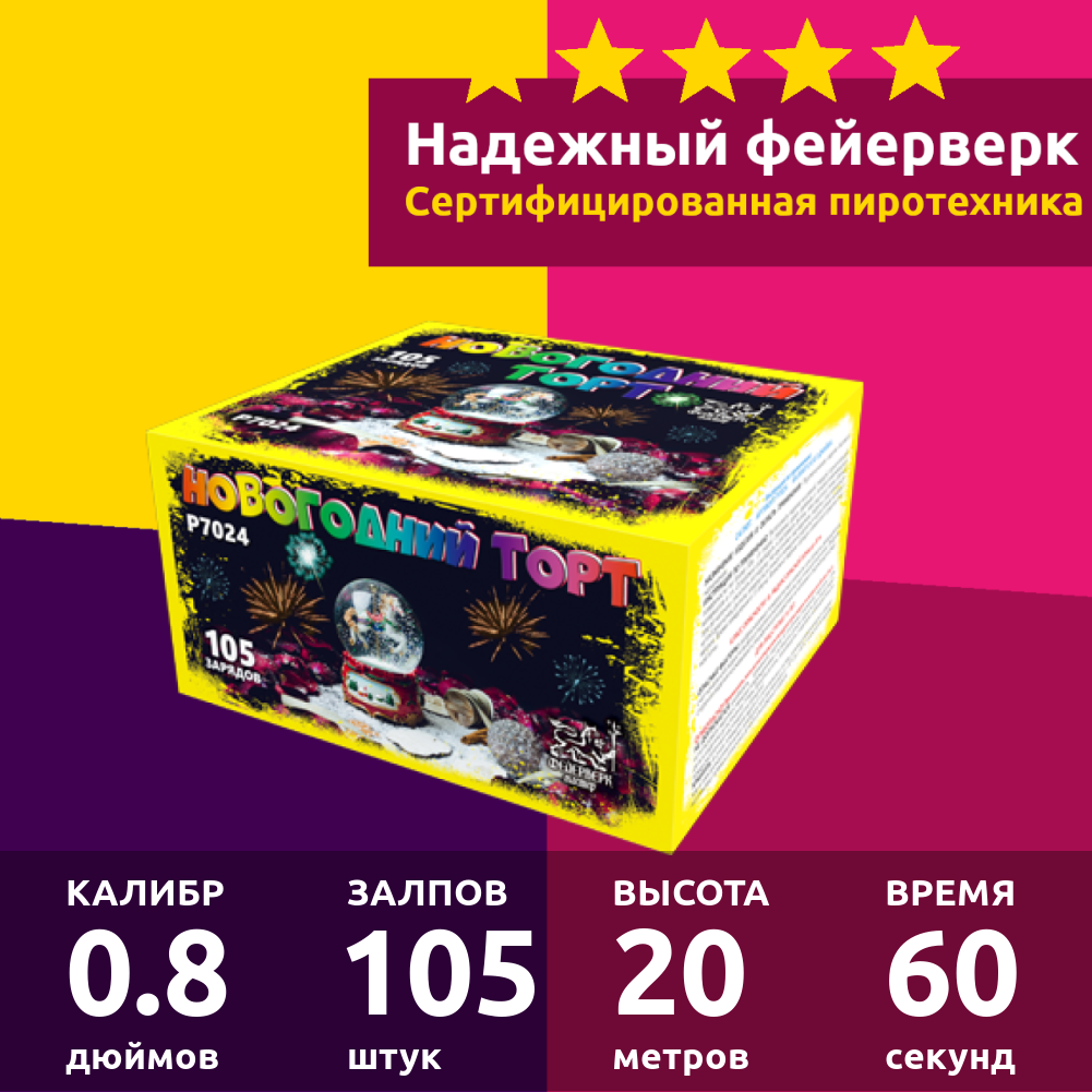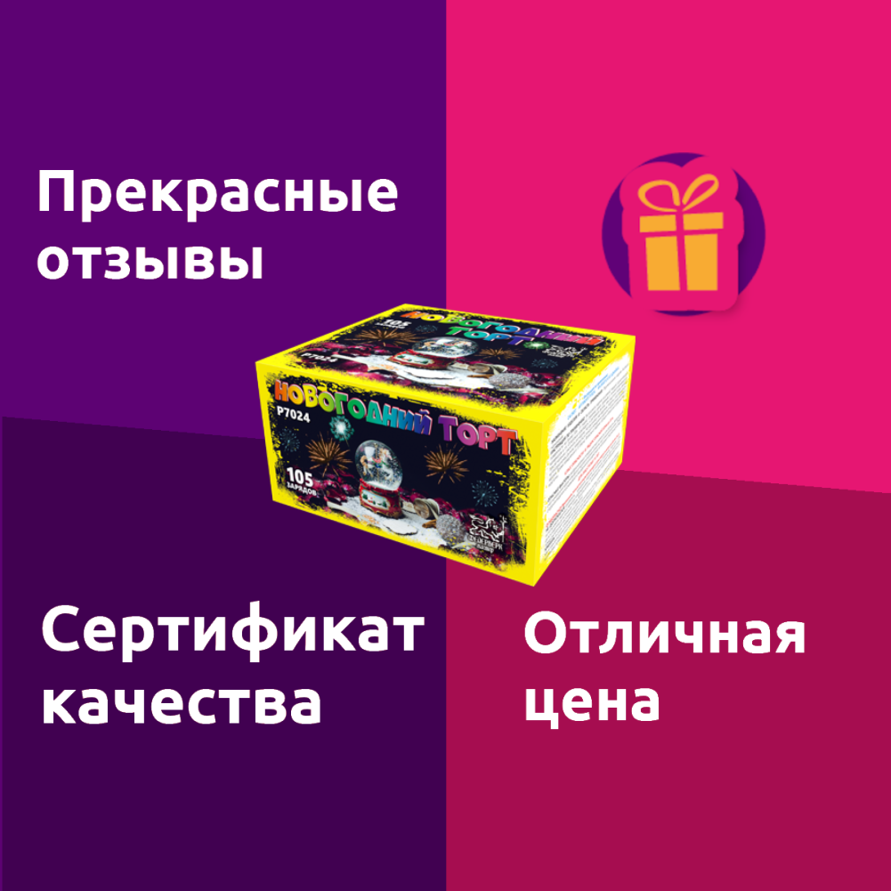 Батарея салютов Фейерверк Мастер Новогодний торт P7024, 105 залпов интересное:
