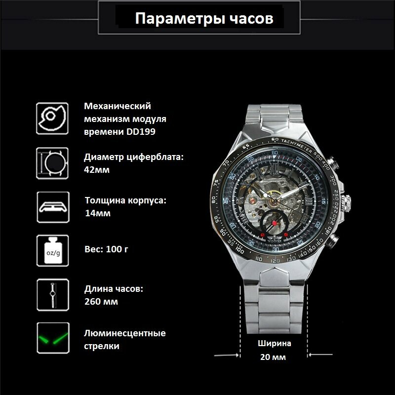 Часы механические мужские Winner TM432 серебристые с автоподзаводом интересное: