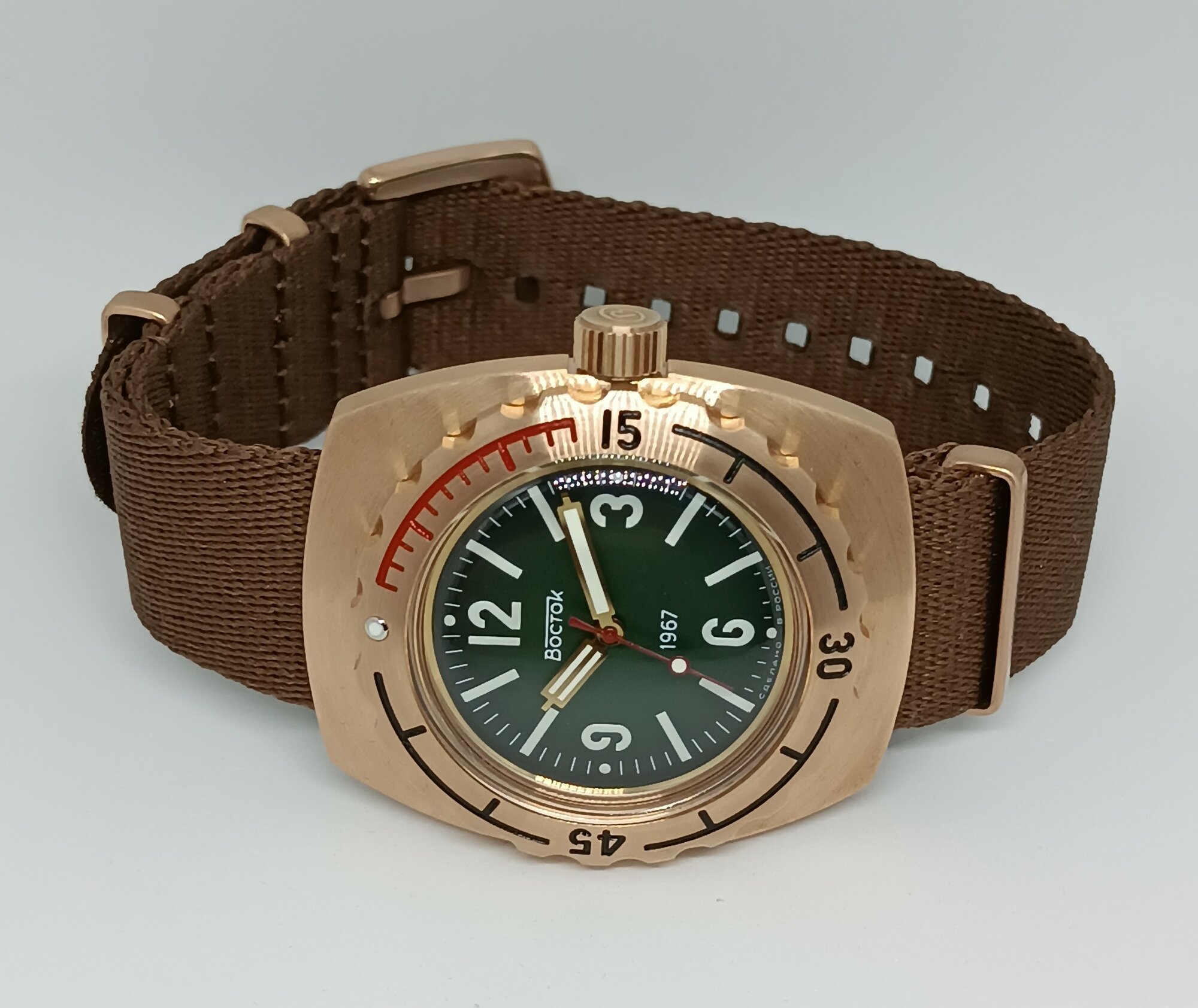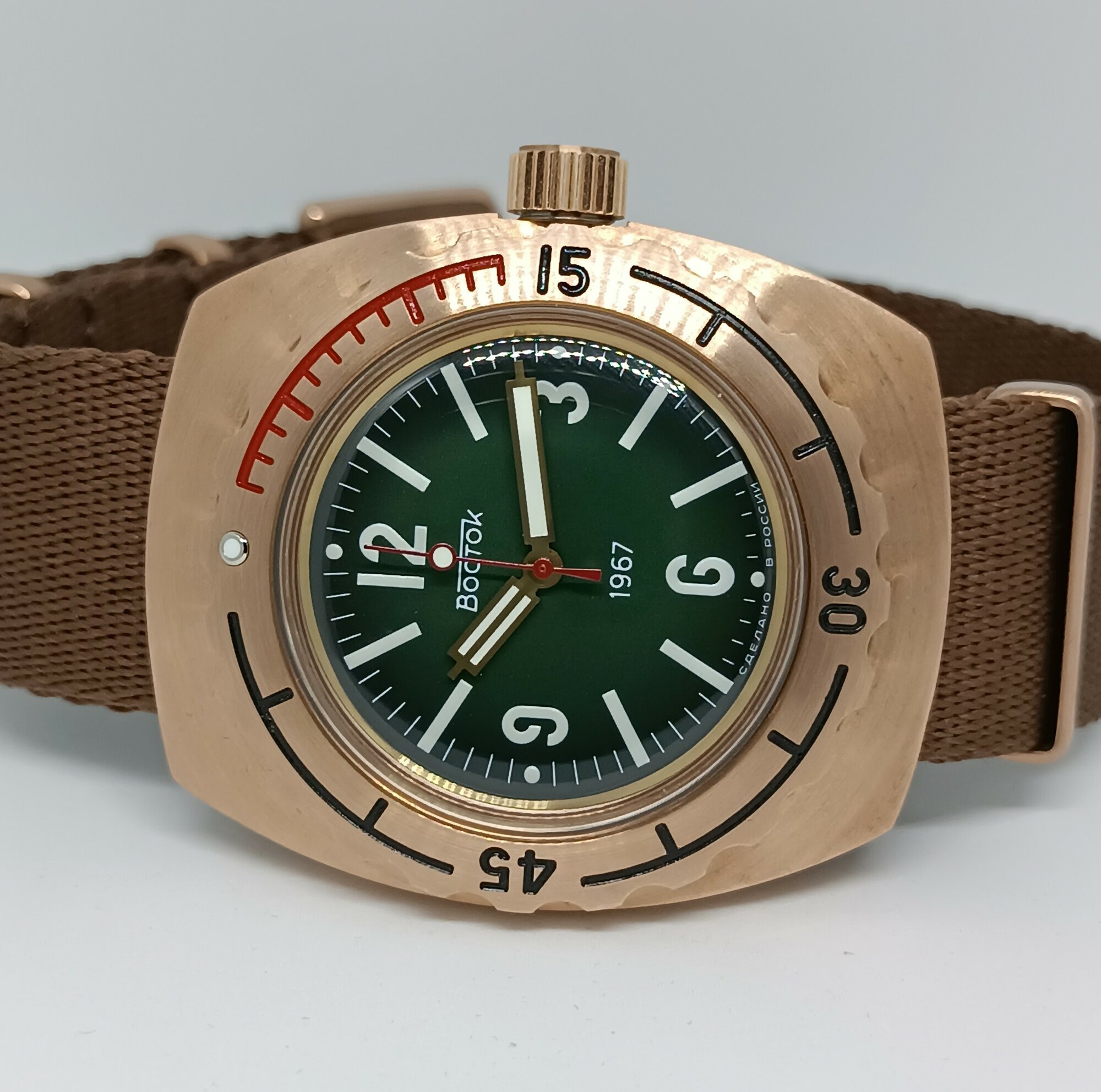 Часы наручные Восток Амфибия 1967 бронза. Модель 2415.01/90807Б.