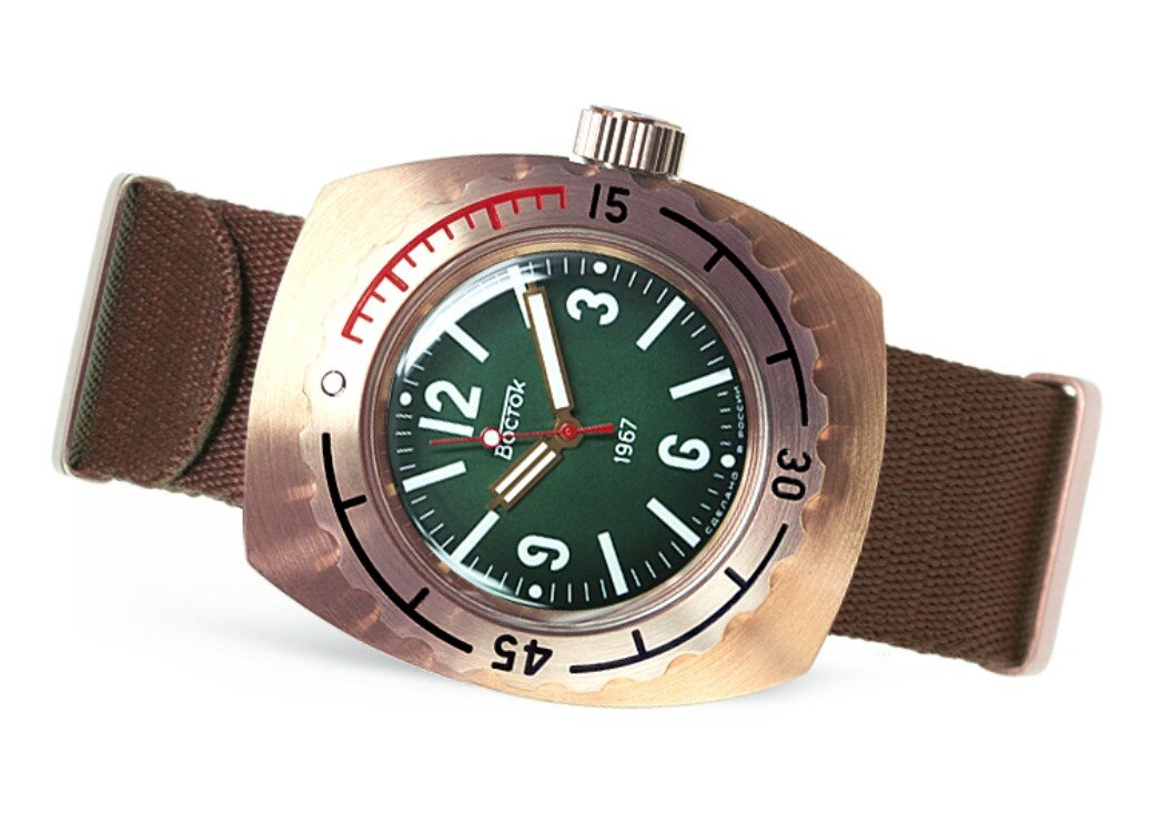 Часы наручные Восток Амфибия 2415.01/90808Б. Бронза. Зелёные. интересное: