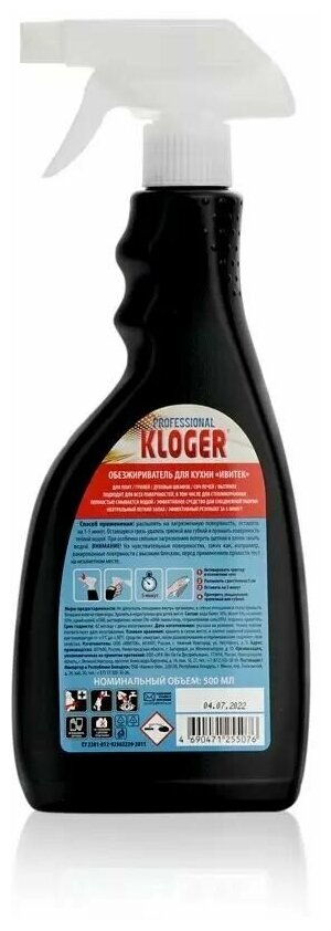 Чистящее средство для плит и микроволновых печей Kloger Proff, Жироудалитель, 500 мл