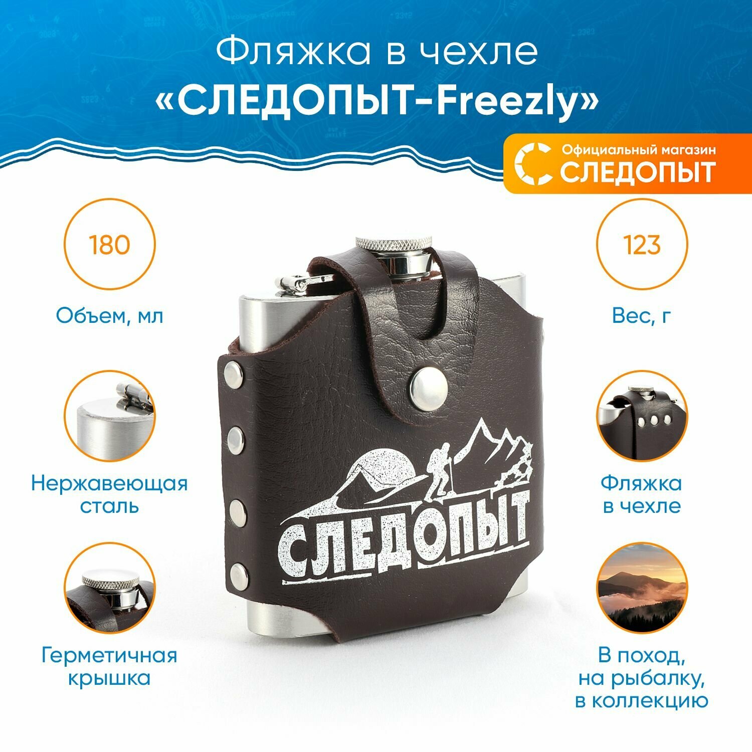 Купить Фляжка «следопыт - Freezly» в кож. чехле, 180 мл PF-BD-F12