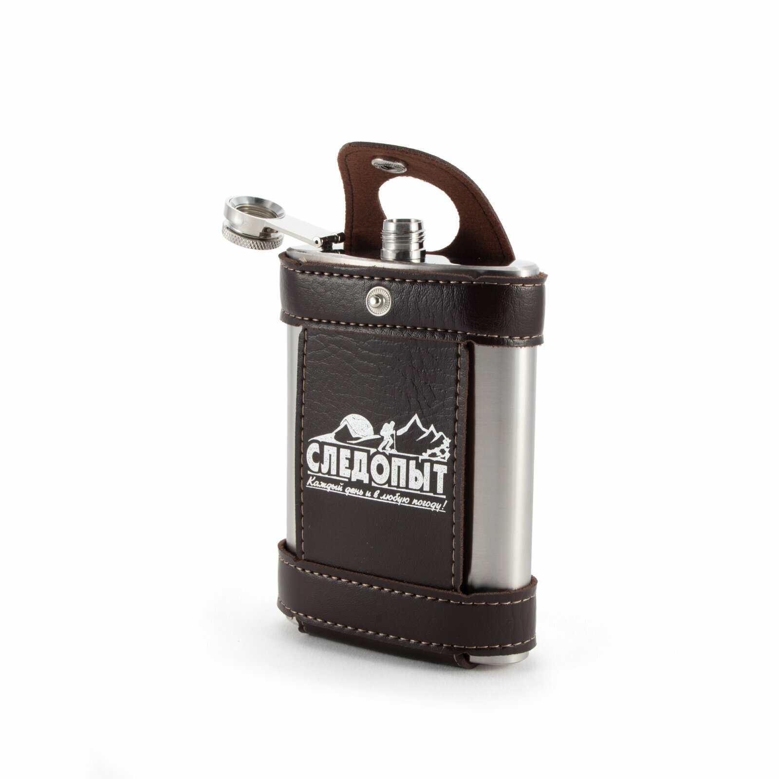 Фляжка Следопыт FREEZLY 180мл PF-BD-F12, в кож. чехле, цв. Коричневый