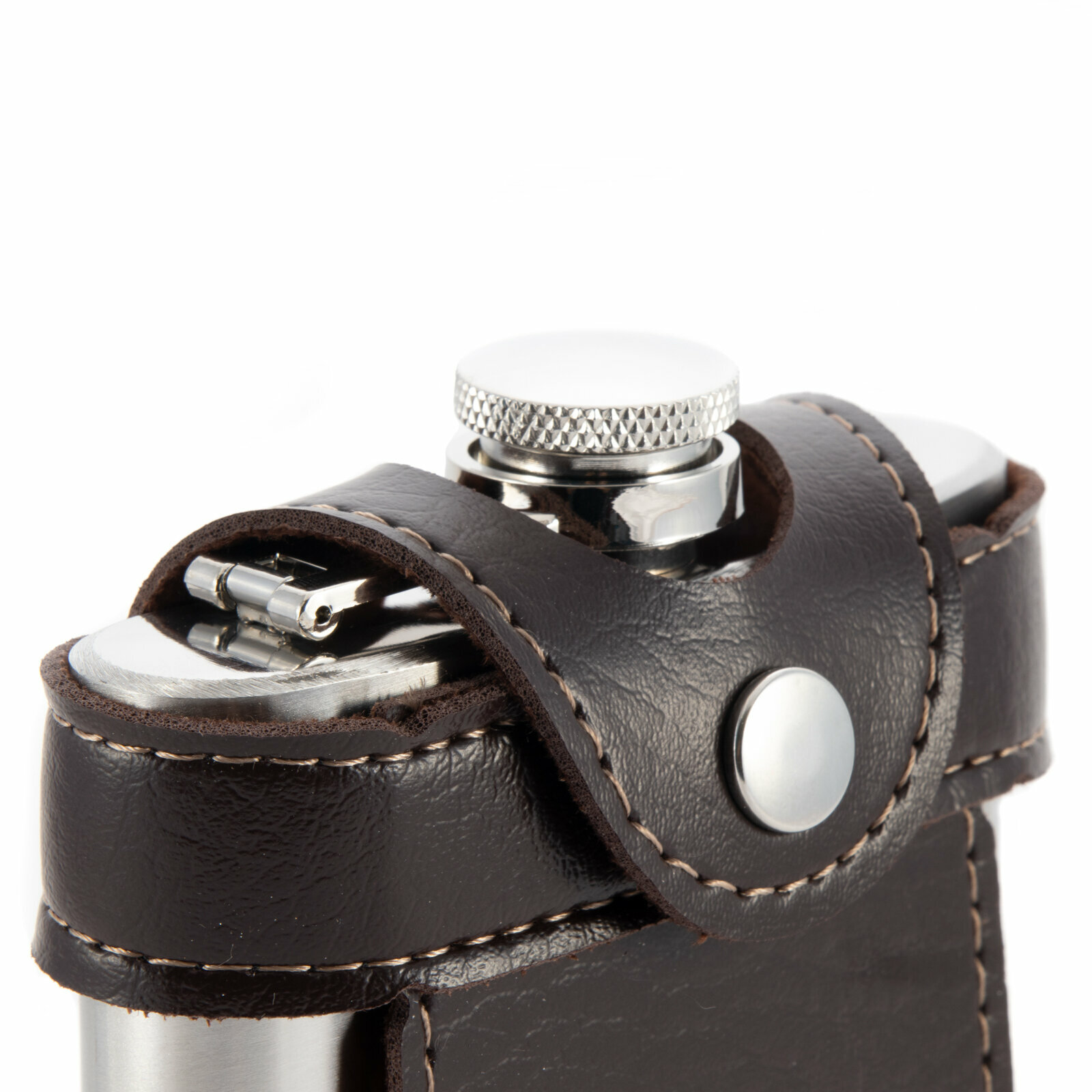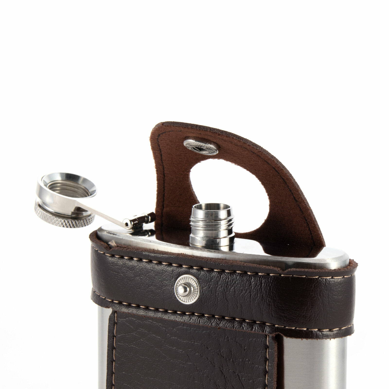 | Дополнительная информация | Прочная, долговечная кожаный чехол компактные размеры классический вариант вместилища для различных жидкостей прочным фиксатором на крышке Материал: Нержавеющая сталь |