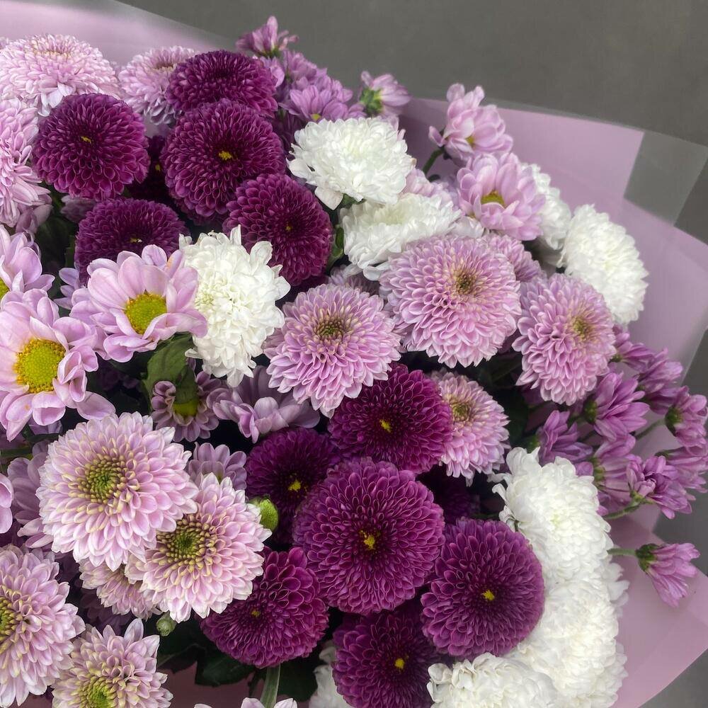 Микс букет хризантем Сантини 11, цветочный магазин Wow Flora интересное: