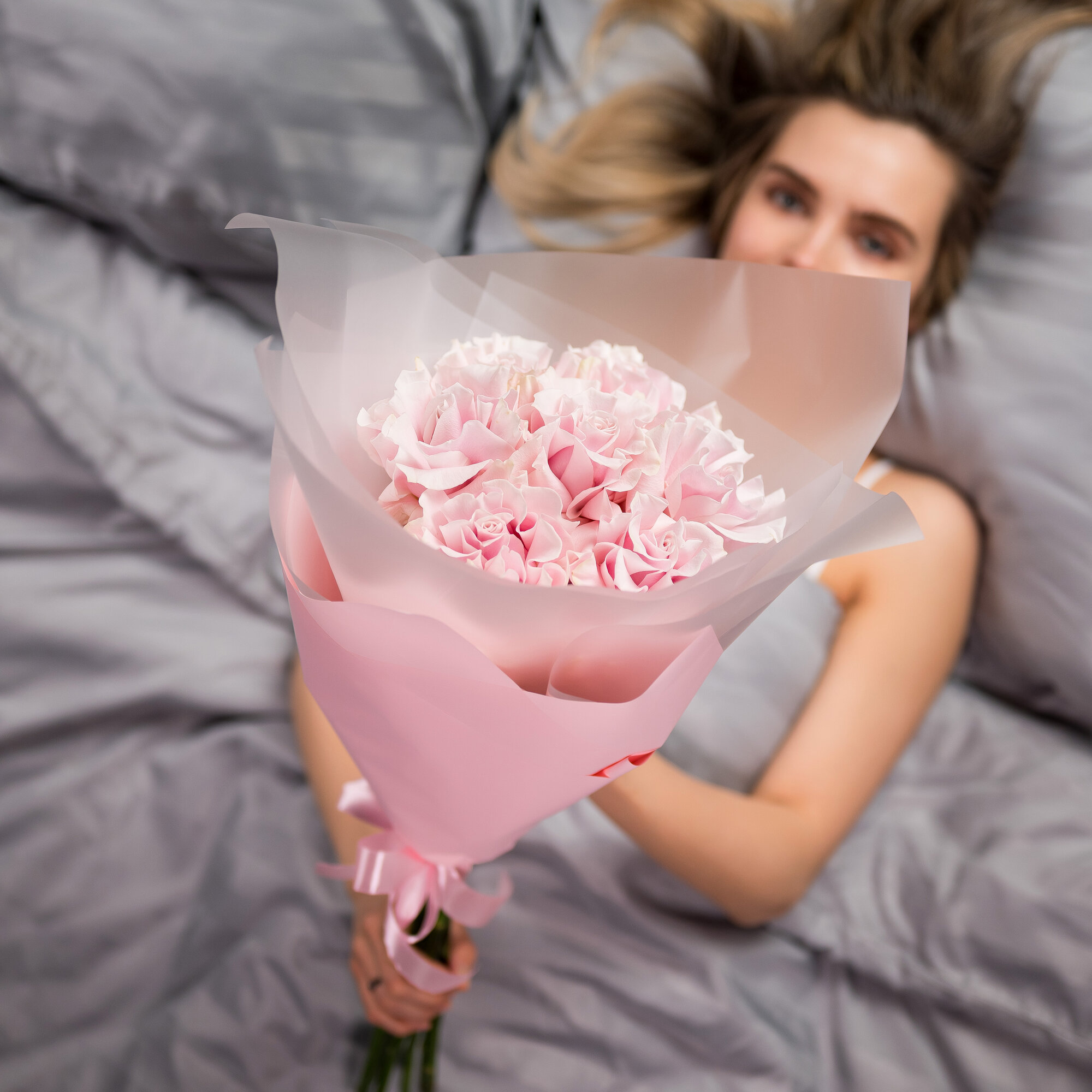 Монобукет живых цветов 9 французских розовых роз