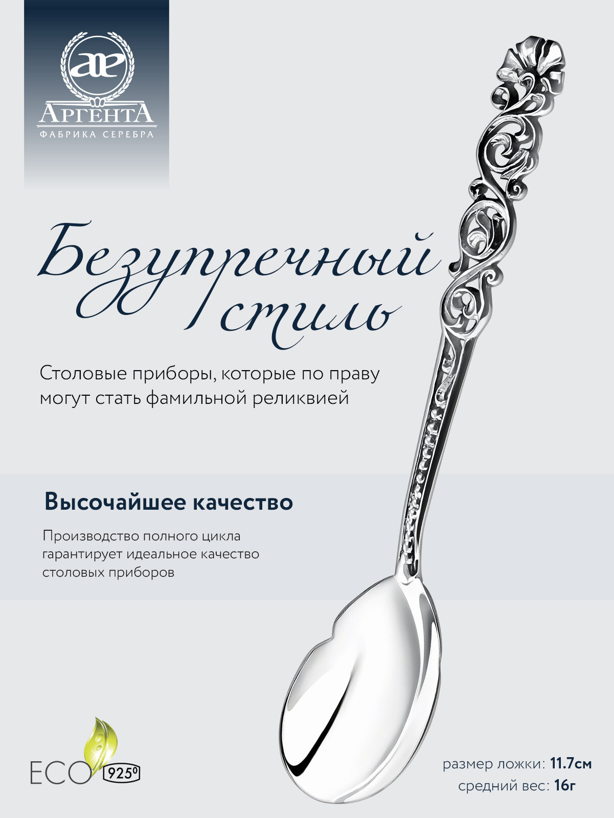 Серебряная чайная ложка с логотипом "Е" с позолотой от бренда "Аргента"