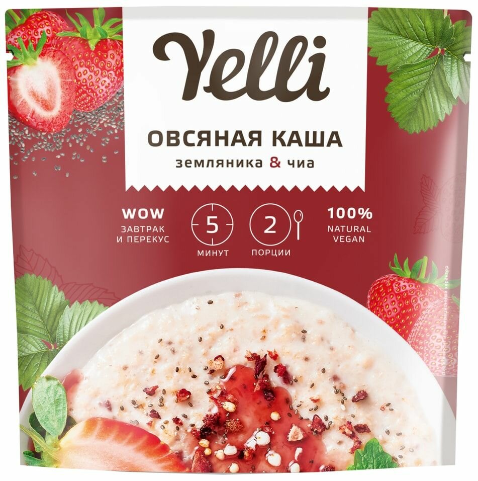 Yelli Каша овсяная земляника и чиа, 60 г, 4 шт