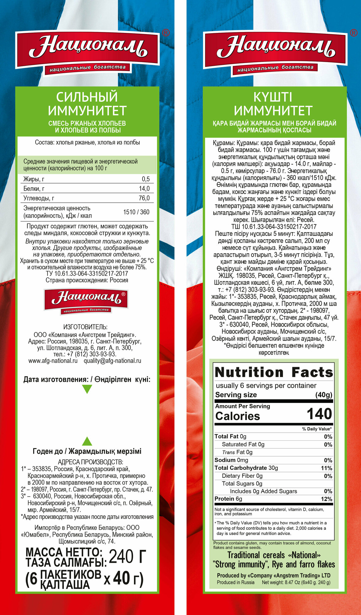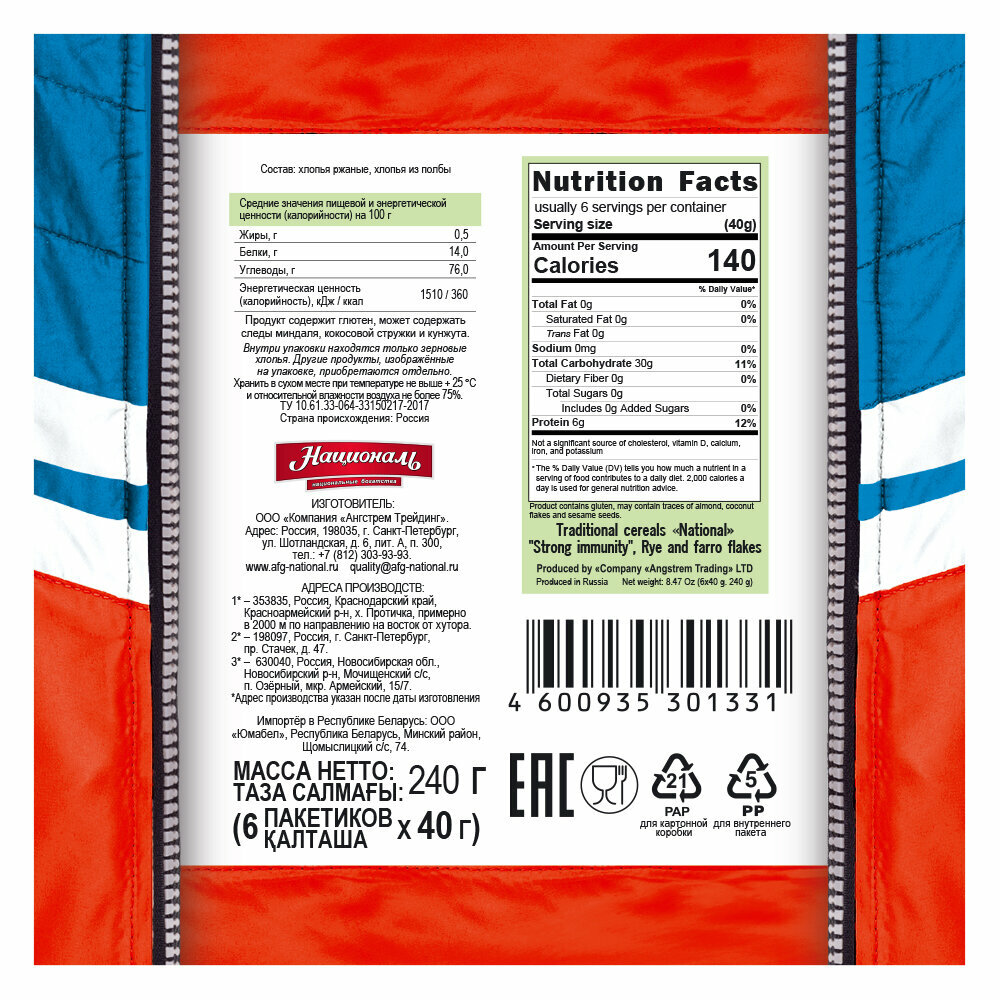Смесь хлопьев и злаков Националь «Сильный иммунитет» (хлопья ржаные, хлопья из полбы) 6 порций, 240 г интересное: