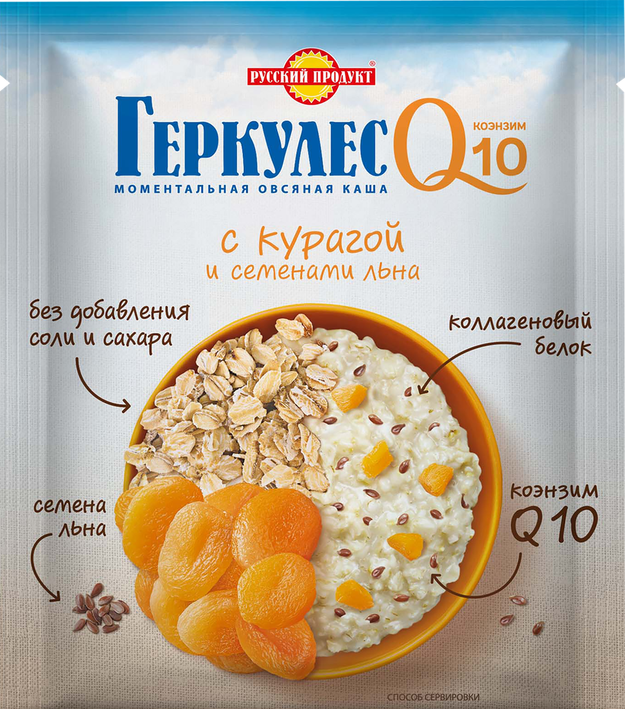Каша овсяная геркулес Q10, с курагой и семенами льна, 35г интересное:
