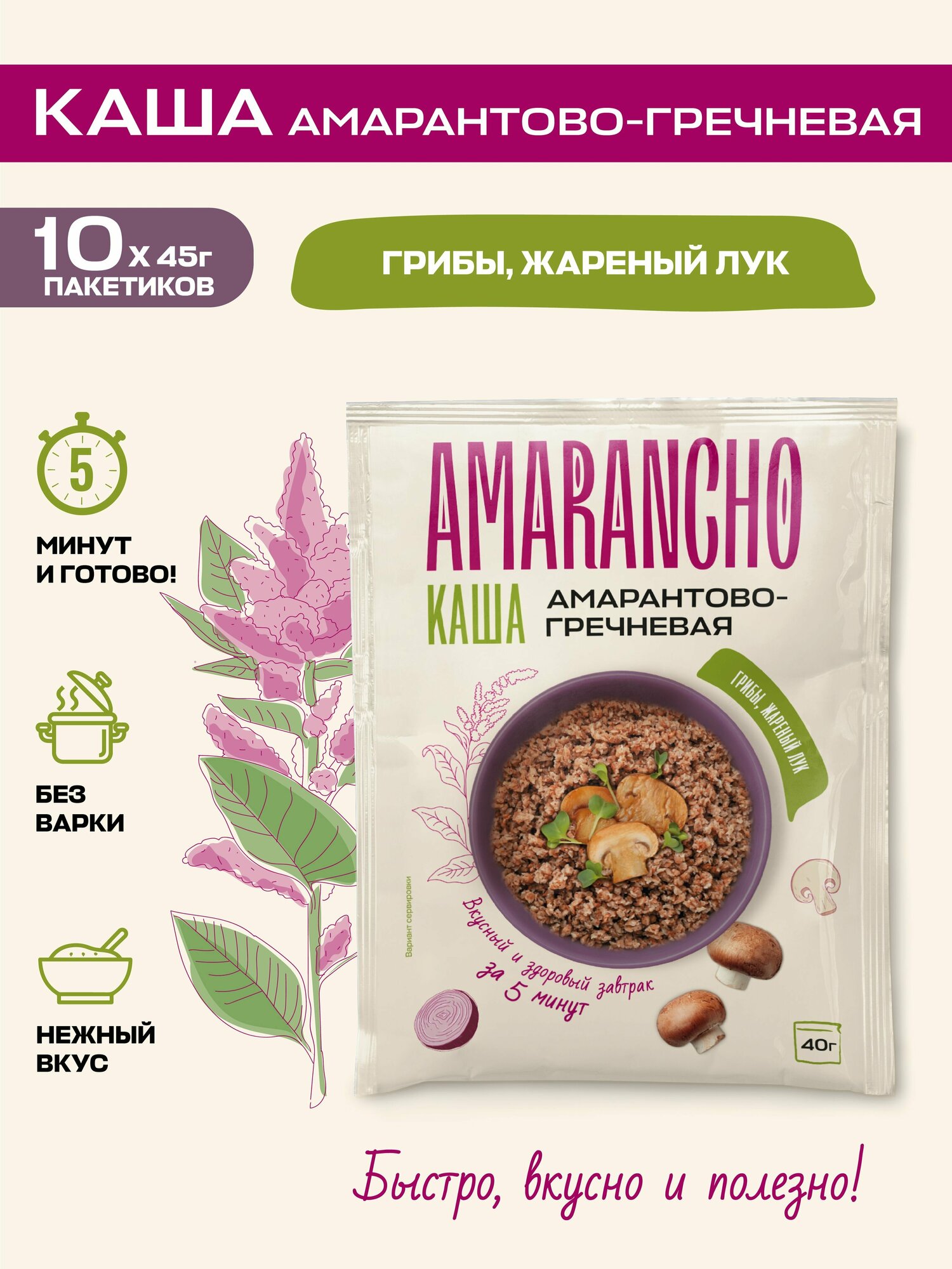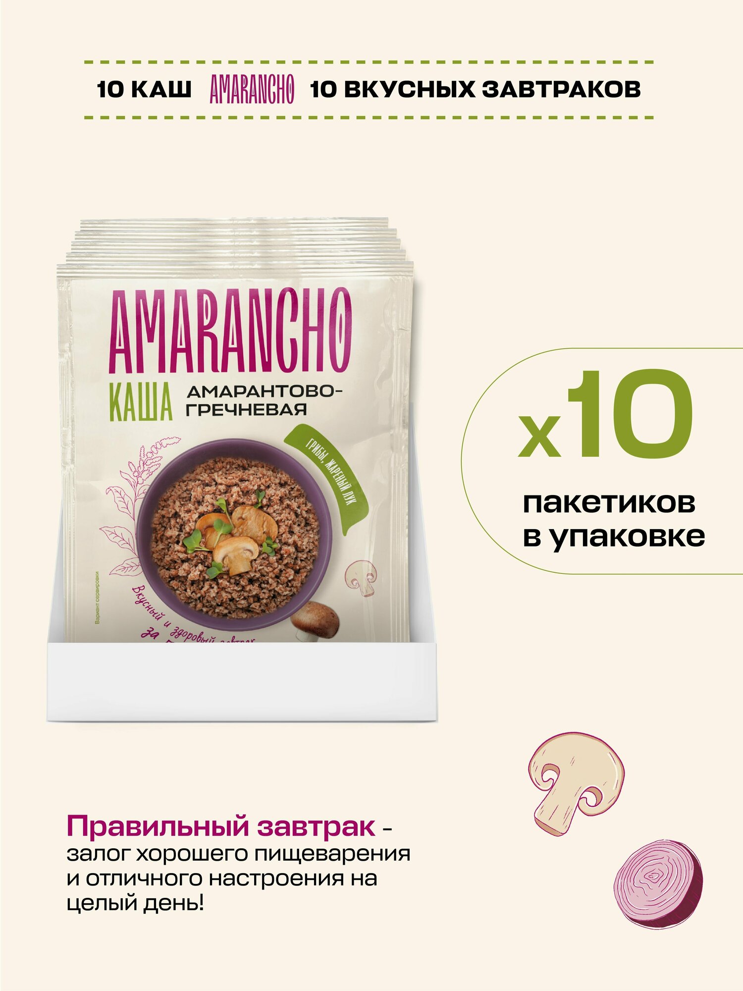 Каша амарантово-гречневая с грибами и жареным луком, "Amarancho", быстрого приготовления 10 пакетиков по 40 г