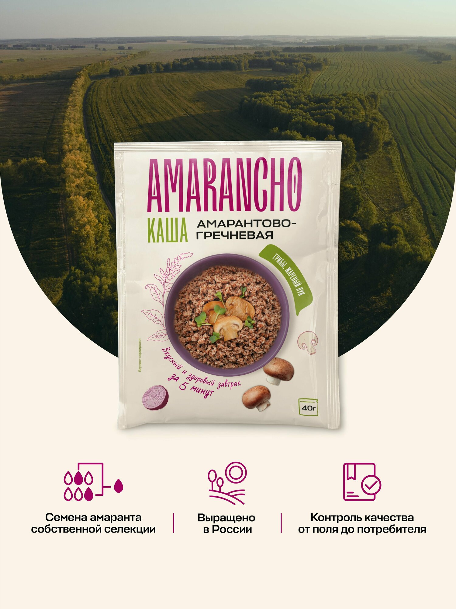 Купить Каша амарантово-гречневая с грибами и жареным луком быстрого приготовления Amarancho