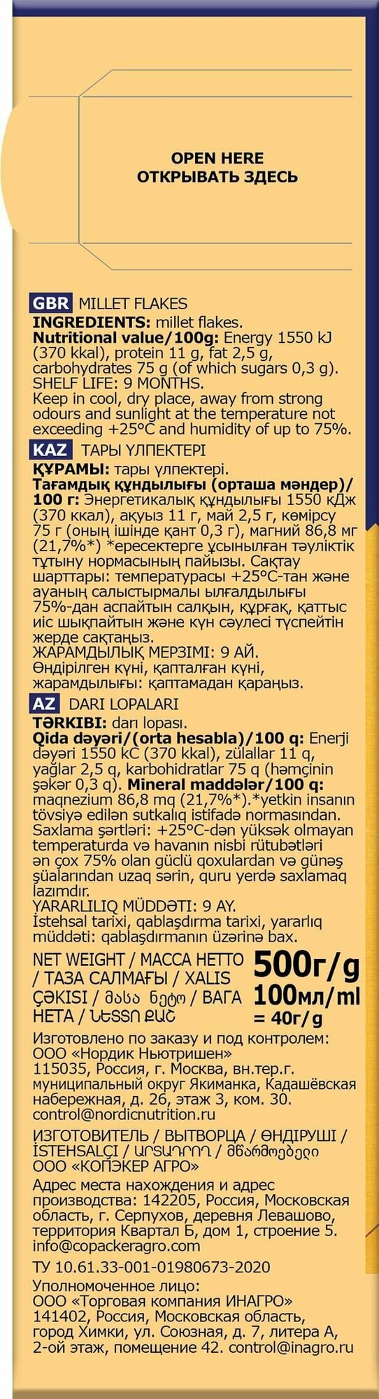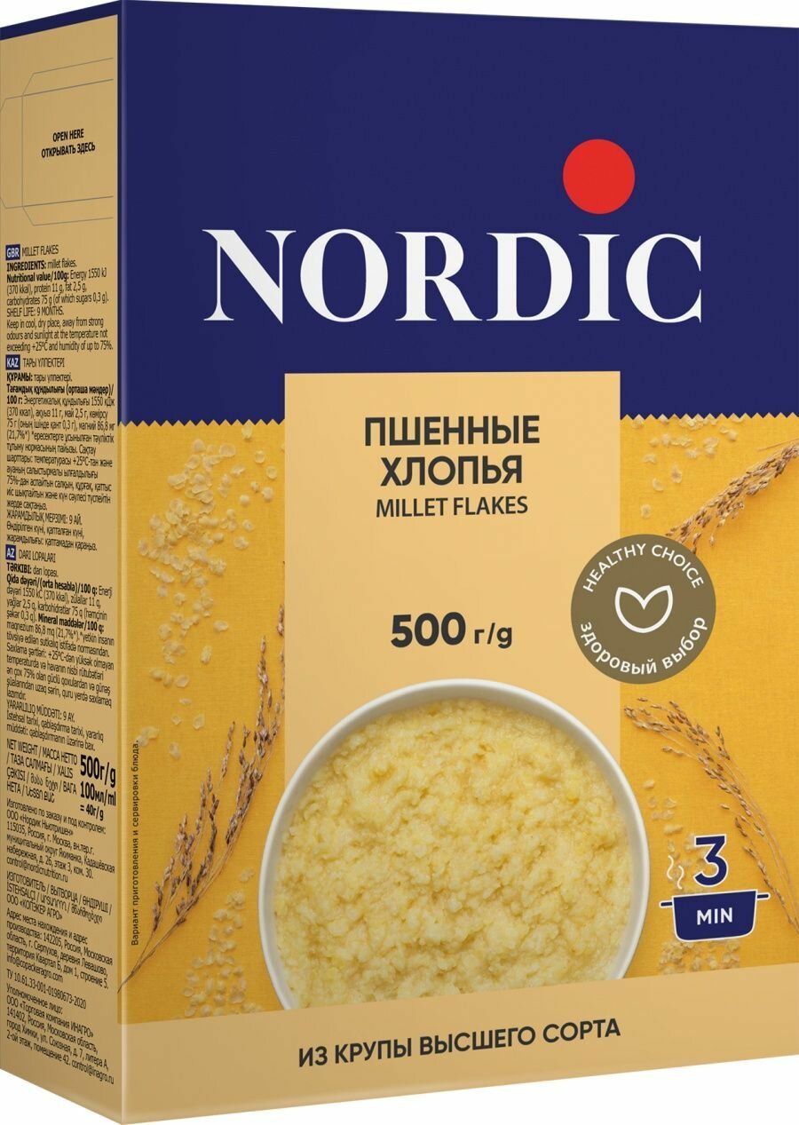 Хлопья Nordic пшенные 2 шт по 500 г интересное: