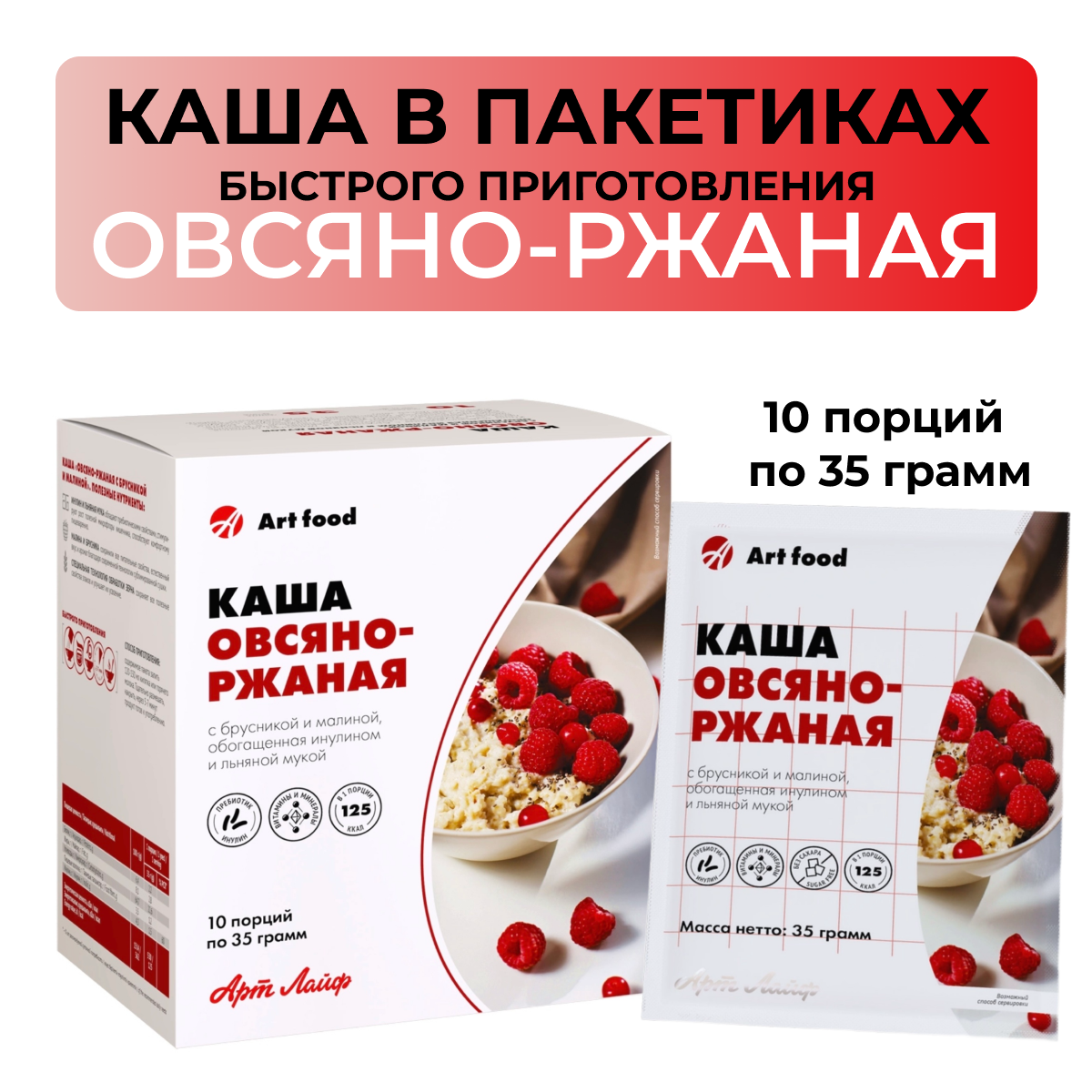 Купить Арт Лайф, Каша Овсяно-ржаная с брусникой и малиной, обогащена инулином и льняной мукой, без сахара, 10 порций. Артлайф Art Life