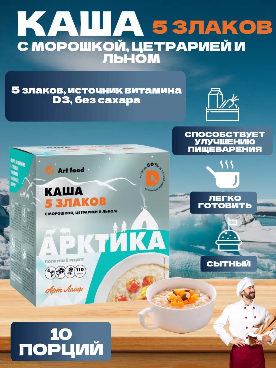Артлайф Каша 5 злаков Арктика с морошкой, цетрарией и льном, Короб 10 порций по 30 гр. Арт лайф / Artlife