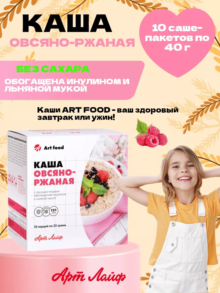 Арт Лайф, Каша Овсяно-ржаная с брусникой и малиной, обогащена инулином и льняной мукой, без сахара, 10 порций. Артлайф Art Life